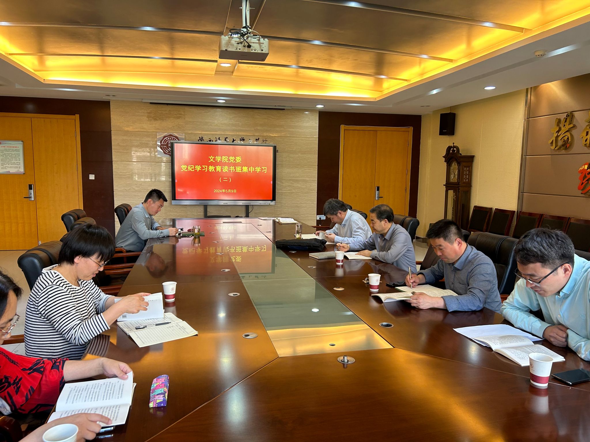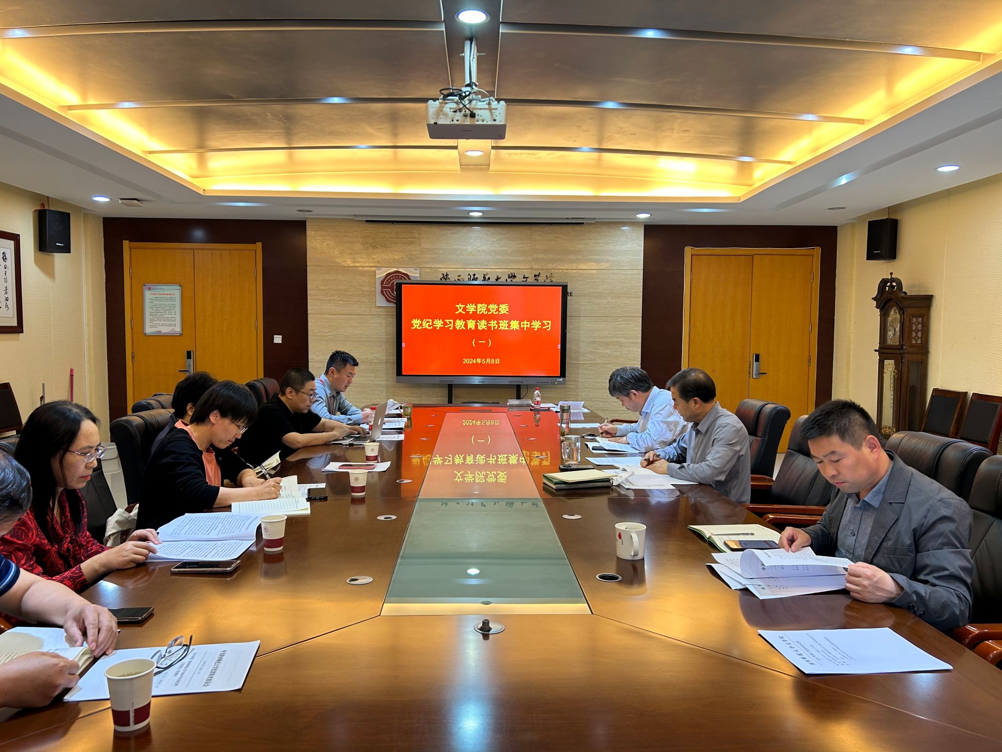 5月8日,文公司党委举办党纪学习教育读书班,深入学习贯彻习近平总书记关于党纪学习教育的重要讲话、重要指示精神和中央部署要求,认真学习领会新修订的《中国共产党纪律处分条例》。文公司党委书记闫文杰主持开班式,公司党委委员、纪委委员和其他班子成员参加读书班。