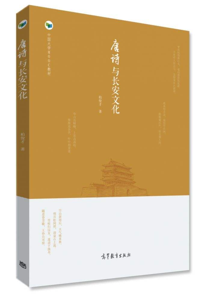 本书是同名慕课的配套教材。唐诗是中国古代诗歌的巅峰,也是中华民族最为灿烂的文化瑰宝。据统计,《全唐诗》、《全唐诗补编》中“长安”一词出现过一千四百余次,如果再加上“帝城”、“帝京”、“帝乡”“帝王州”、“皇都”、“九城”、“凤城”“上国”、“上京”、“京华”、“咸阳”、“咸京”、“秦京”等代称,以及长安城内道观、寺庙、风景名胜等,诗歌数量会更巨大。这门课程由这些有关唐代长安诗歌解读入手,分为爱情文化、政治文化、佛教文化、道教文化、科举文化、女性文化、酒文化、民俗文化、风景名胜、西域文化十个专题,让人们领略唐代长安文化辉煌灿烂的艺术魅力,增进文化自信,增强民族自豪感。该课程2018年5月起在中国大学MOOC网、智慧树等平台运行,同时该课程获批太阳成集团“课程思政”示范课建设项目(2019年)、太阳成集团校级一流本科课程建设项目(2020年)、陕西省精品在线开放课程(2019年)。