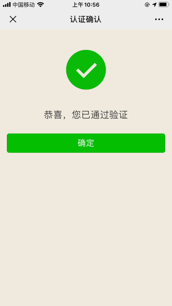 第三步:点击用户验证后会弹出验证结果,显示以下页面证明已通过;