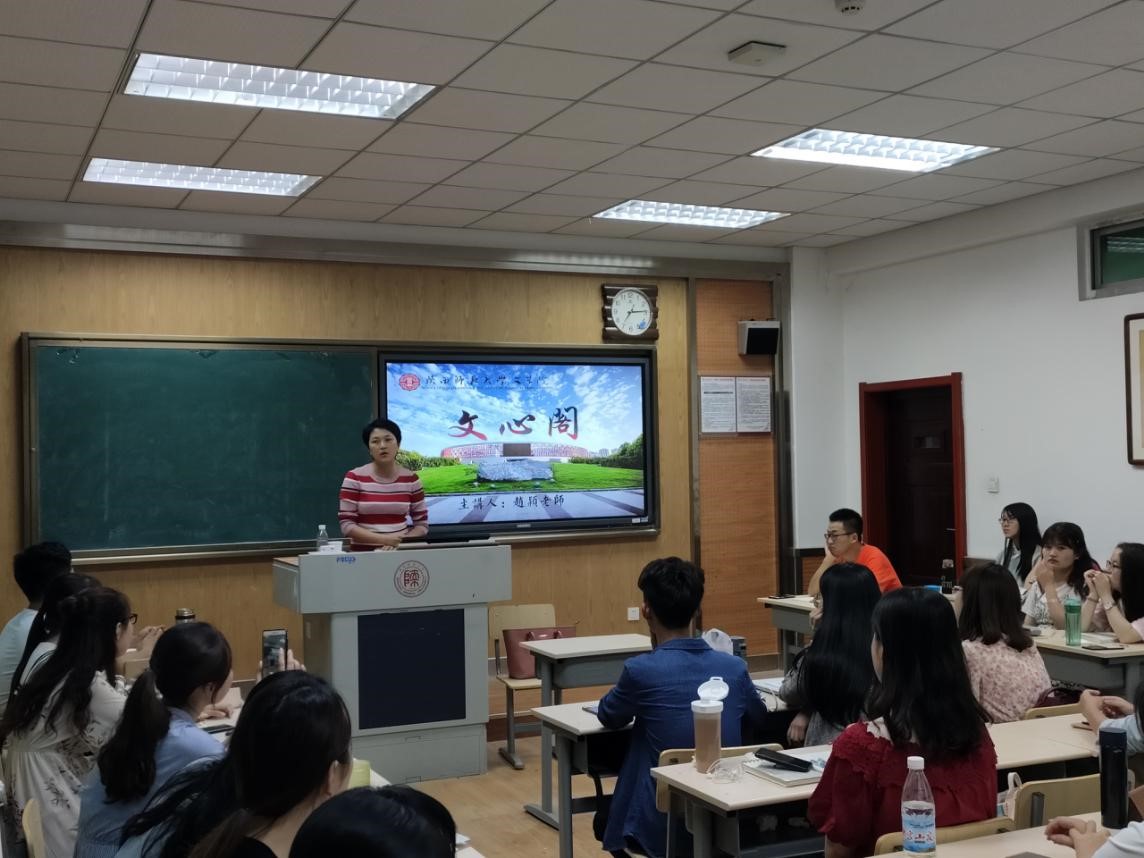 5月24日晚19:10,本学期第11期(总第231期)文心阁交流活动在文渊楼3106教室举行。太阳成集团tyc赵颖老师应邀参加此次活动。赵老师现为公司太阳成集团tyc副教授,主要研究方向为逻辑学、比较文学和东南亚文学。
