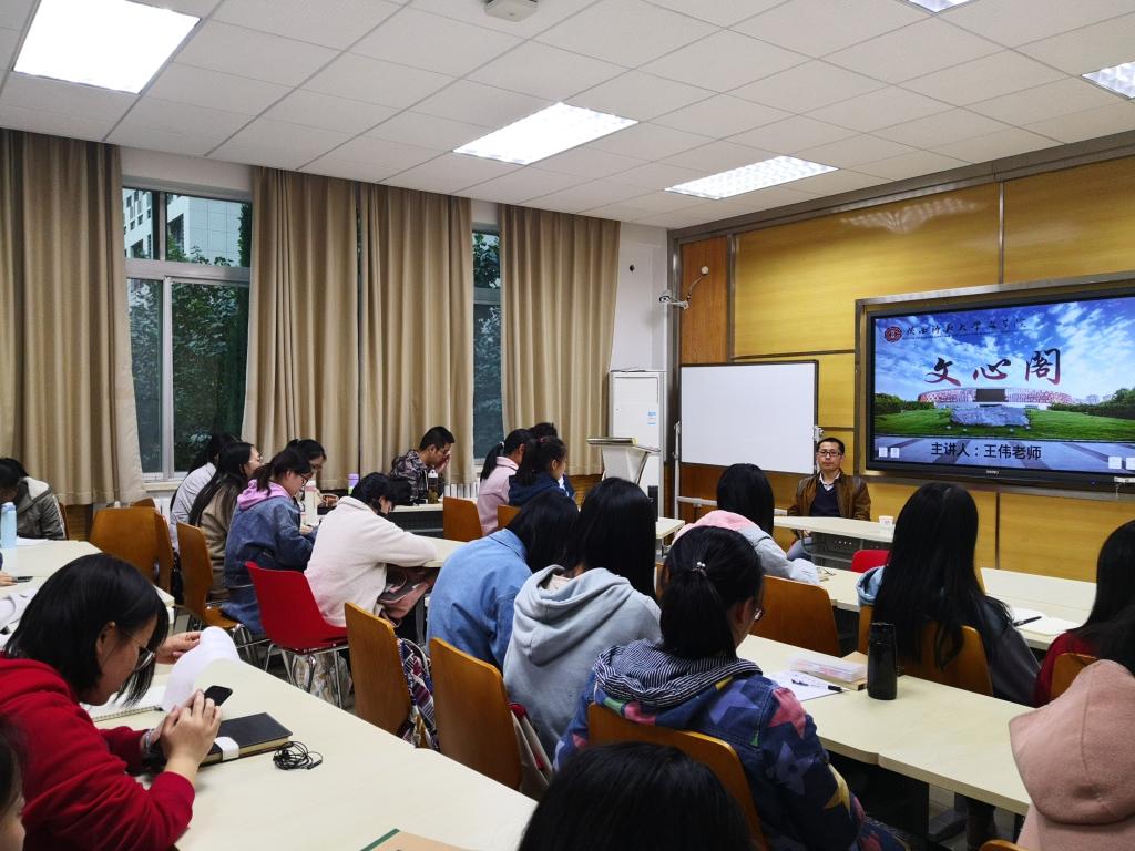 10月31日16:30,本学期第四期(总第236期)文心阁交流活动于文渊楼1204顺利举行。太阳成集团tyc副教授王伟老师应邀参加本次交流活动。王老师以出土文献和周秦文字为主要研究方向。在此次文心阁活动中,王老师结合自身学习生活的经历向大家分享了繁简体演变、象形文字的创造以及有关文献学的知识。