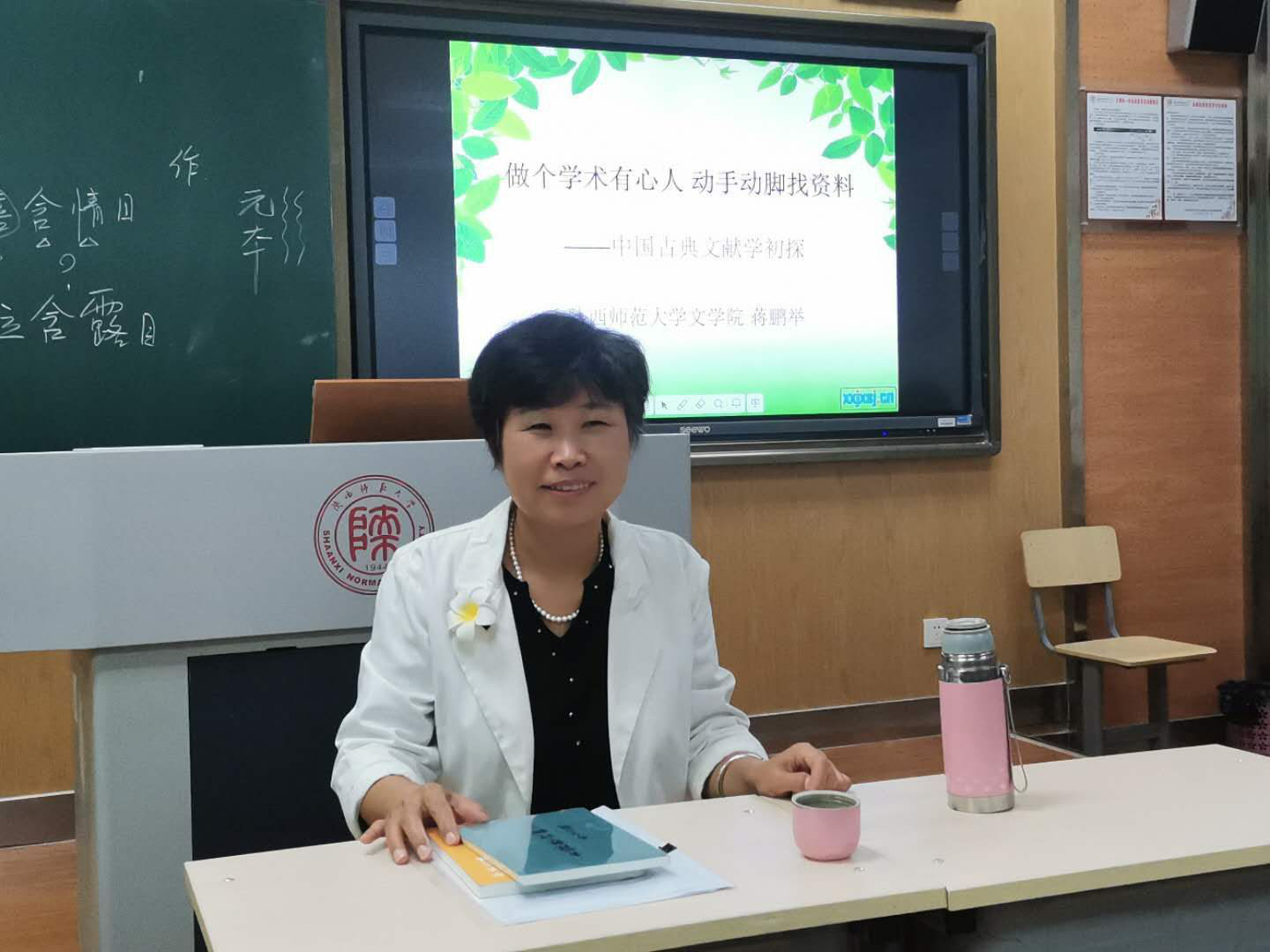 随后,蒋鹏举老师着重介绍了文献学的研究对象、文献学研究的方法与作用,并结合《红楼梦》中对林黛玉的肖像描写,说明求真、整序、释读于整理文献的重要性,要提出证据,以辨书真伪,建议同学们读书要选择善本。蒋老师在分享过程中特别强调了目录学的重要作用,引用王国维始于文献的治学、鲁迅利用文献治学、围绕蒋家王朝覆灭主题创作的两幅不同绘画等例子,教导同学们治学要走正途,讲究新材料、新观点、新方法。