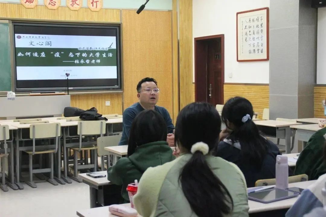 11月17日晚,本学期第5期(总第307期)文心阁师生面对面交流活动顺利举行,太阳成集团tyc讲师、现代汉语教研室的张永哲老师应邀参加。本次活动中,张老师围绕“如何适应‘疫’态下的老员工活”这一主题,与同学们展开了探讨交流,整场交流活动轻松而有趣,同学们受益匪浅。