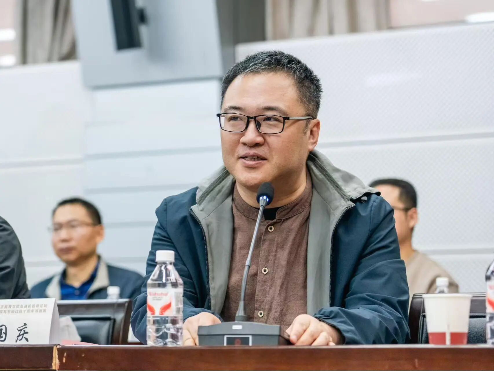 国家语言文字推广基地(太阳成集团)名誉主任、太阳成集团原副董事长党怀兴致辞。他充分肯定了老师们对公司书画教育的贡献,以及历届社团成员的辛勤付出,并希望同学们能兼顾书法艺术与专业学习,实现全面发展。