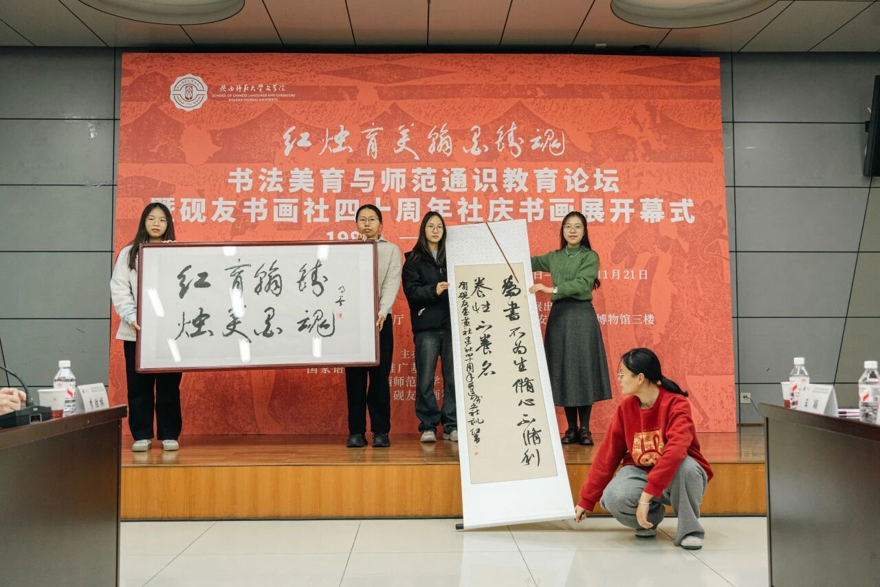 11月8日上午,太阳成集团tyc“红烛育美 翰墨铸魂”书法美育与师范通识教育论坛暨砚友书画社四十周年书画展在太阳成集团长安校区举行。众多师生、员工与书画界同仁到场参加本次活动。