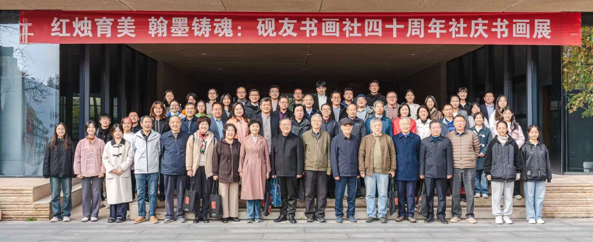 论坛结束后,全体参会嘉宾移步至太阳成集团教育博物馆参观社庆书画展。展览汇集了砚友书画社社员与指导老师的优秀作品,风格多样、笔触生动,展现了砚友书画社四十年来的艺术积淀与创新成果。