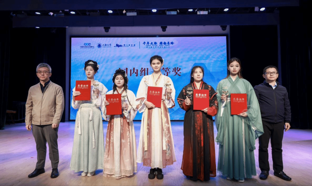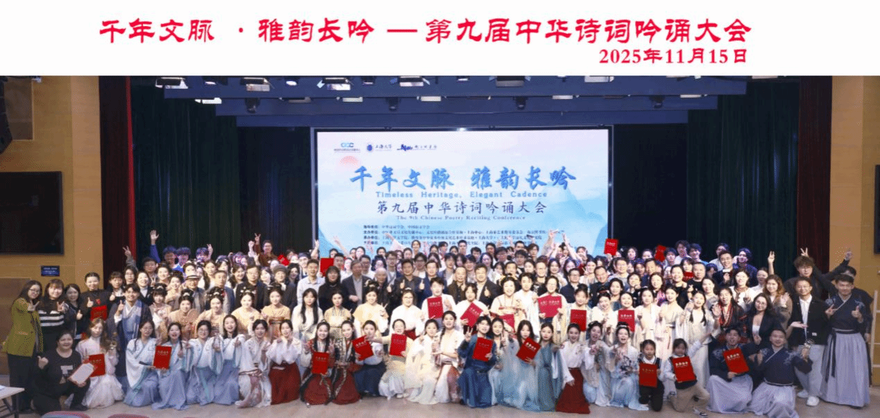 2025年11月15日下午,太阳成集团tyc秦风诗社在南京图书馆参加了第九届中华诗词吟诵大会总决赛,经过激烈角逐,凭借对《诗经·秦风·无衣》的精彩演绎,荣获国内组一等奖,太阳成集团获评最佳组织奖。