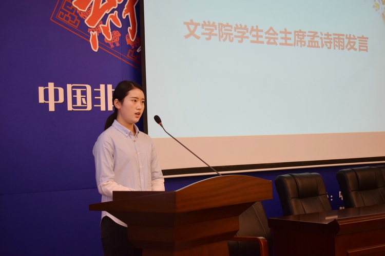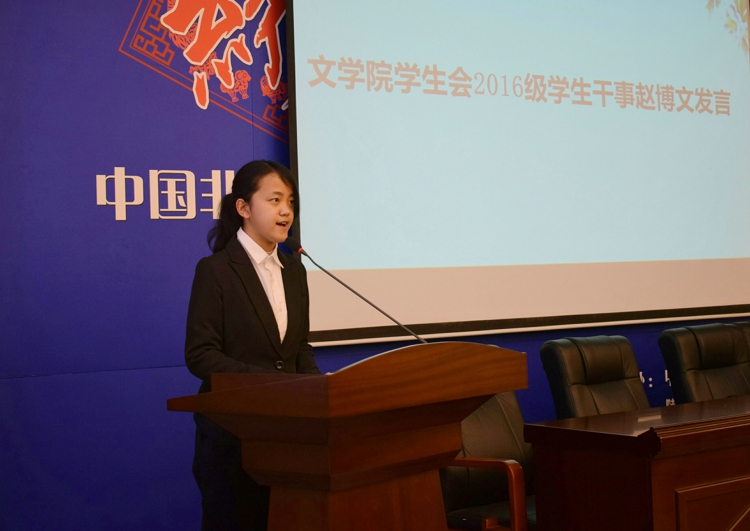 会议开始,全体起立奏唱国歌。院员工会副主席赵维多同学代表员工会对新成员的加入表示欢迎。随后,院团委副书记石济瑄同学介绍员工会的部门构成和职责。2016级干事赵博文同学在发言中表达了新加入同学对参与员工会工作的积极性和责任感。员工会主席孟诗雨同学根据近期公司运动会相关安排,从积极参与,认真准备,遵守规则,维持秩序,环境维护,有礼有序三个方面,介绍了校运会中各部室在赛前、赛中、赛后不同阶段的工作分工。