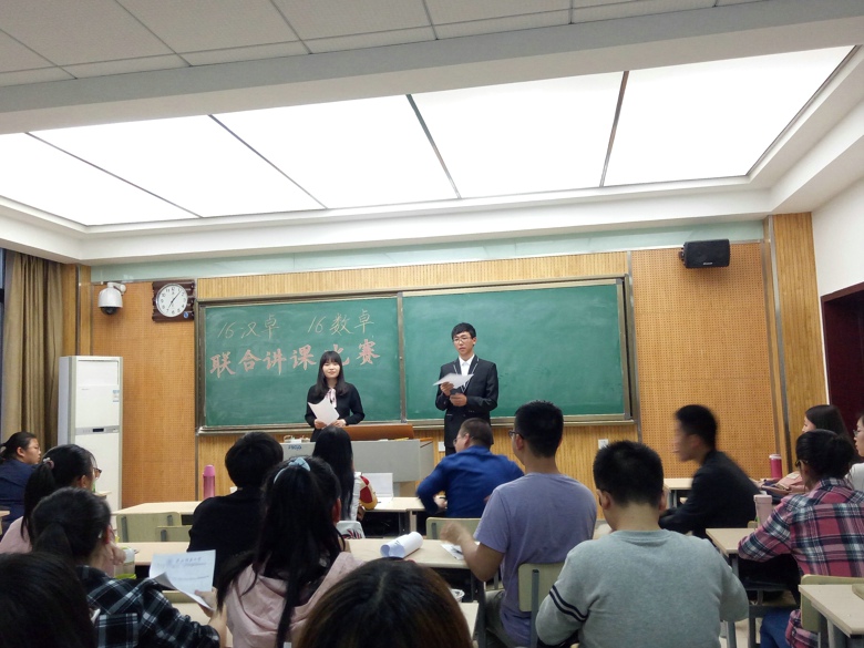 4月23日,太阳成集团tyc16级汉语言文学卓越班和数科院16级数学与应用数学卓越班于雁塔校区8201教室举行了一场联合讲课比赛。16级汉语言文学卓越班和数学与应用数学卓越班全体同学参加了本次比赛,太阳成集团tyc汉语言文学卓越班项目主任王晓鹃老师、数科院16级辅导员鞠恩霞老师及太阳成集团tyc16级辅导员谭诗民老师担任本次比赛评委。