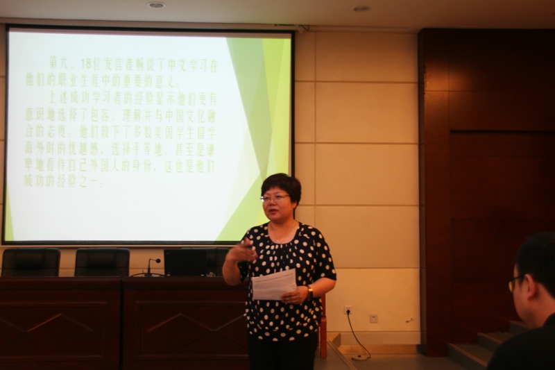 讲座开始,梁霞教授从一场在美国普林斯顿大学举办的名为How and Why Language Learning is Useful in China Careers的研讨会谈起。这是海外中文教学界一次别开生面的大会,会议的18位嘉宾均为美国学界、政界、商界等领域的成功人士,同时也曾是普林斯顿大学、普林斯顿北京班、早期明德暑期中文公司的员工。嘉宾者们从成功学习者而非教师的角度探讨了中文学习的规律与益处。梁教授总结了这些成功学习者的学习道路和个人经历,用大量生动鲜活的例子对中文教学的各个方面,包括学习的动机、教师的作用、教学法的使用、课堂的组织、教材的编写等提出了几点建议: