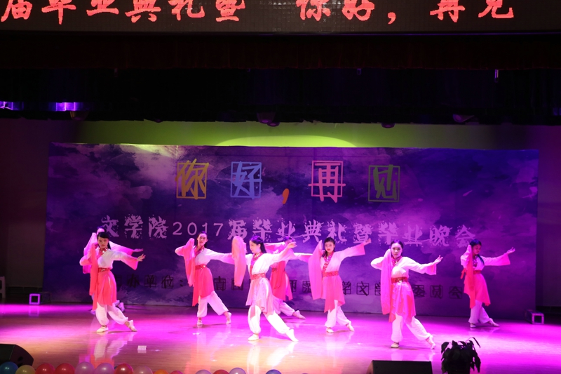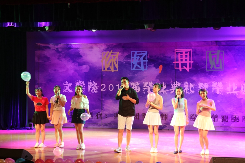 毕业晚会说,一曲《光阴的故事》将现场的师生带到了这四载共同度过的时光里。他们一边沉浸在回忆里,一边轻轻哼唱,偌大的会场只余歌声和回忆。接下来的《流光》《年轮说》《如锦似梦》将四个年头、一千四百六十一天间的泪水和欢笑,都浓缩在这一方舞台上。《后青春的诗》《想把我唱给你听》《干杯》,一首接一首的歌,唱着青春,唱着梦,唱着友谊和爱情,也唱着对公司的不舍。老师们也纷纷送上惊喜。李晨子老师演唱《爱的代价》,辛田老师演唱《我的歌声里》,将现场气氛推向高潮。结束时,全体毕业生们合唱《朋友》,掌声雷动。