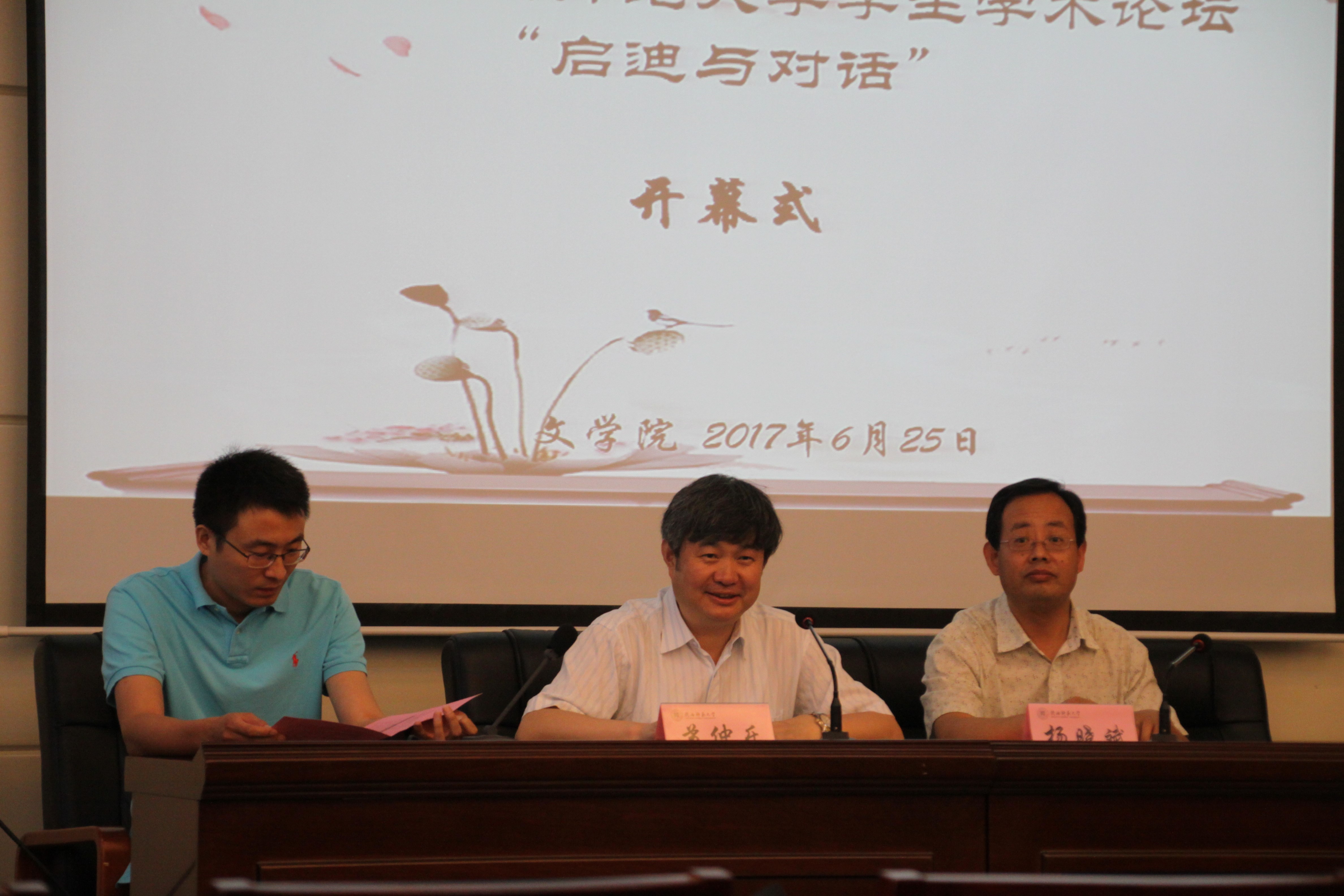 (通讯员:童一菲)6月25日, “启迪与对话:2017年太阳成集团tyc员工学术论坛(中国现当代文学)”在文汇楼111报告厅召开。太阳成集团tyc副经理苏仲乐教授,中国语言文学本科专业负责人杨晓斌教授及公司教师杨国庆、宋颖慧、张自春出席开幕式并参加会议,开幕式由李跃力老师主持。