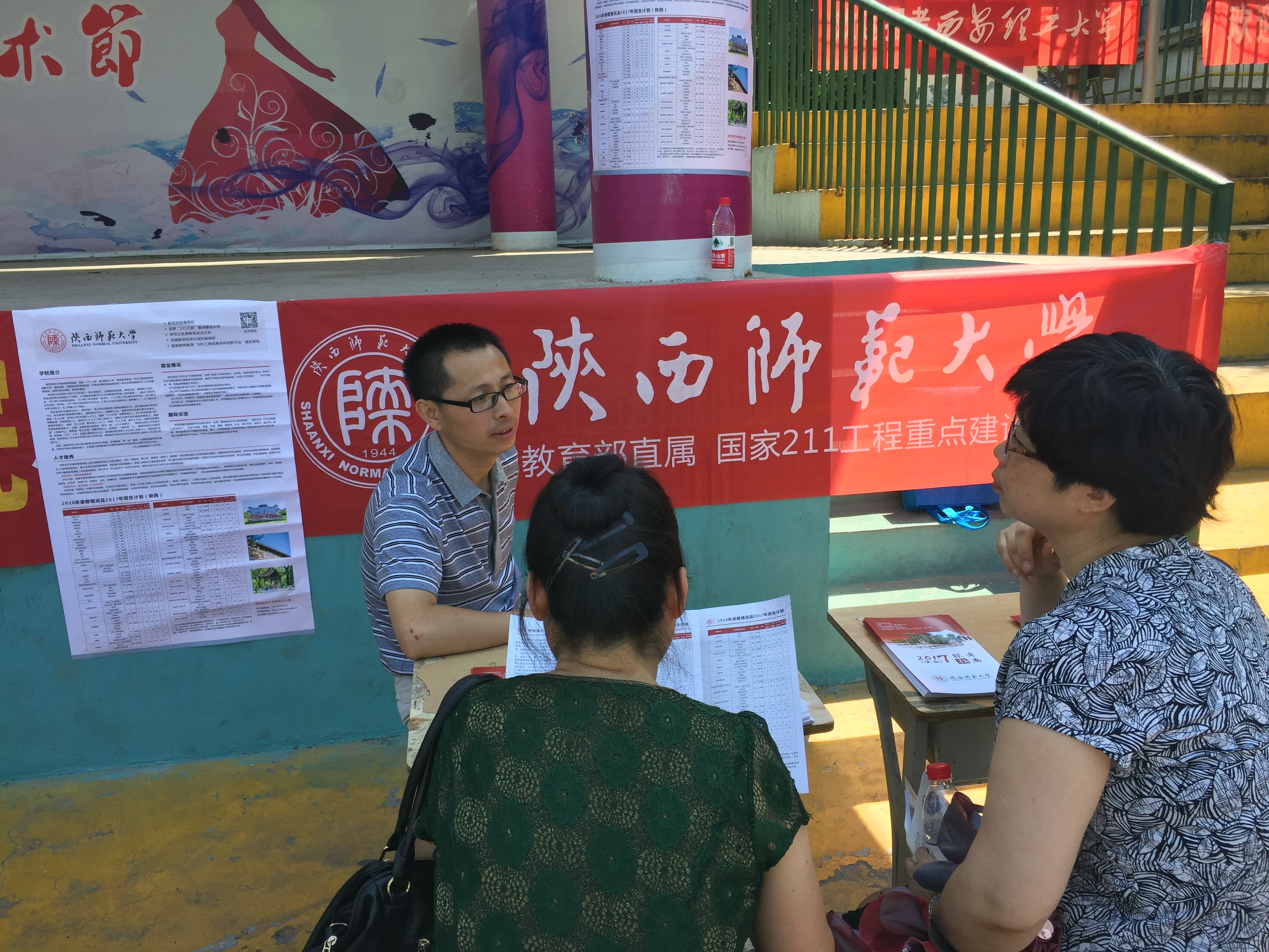 2017年6月26日太阳成集团招生咨询会咸阳站成功举办。此次招生咨询会由太阳成集团tyc古代汉语教研室王伟老师负责,举办地点在咸阳市彩虹中学操场。