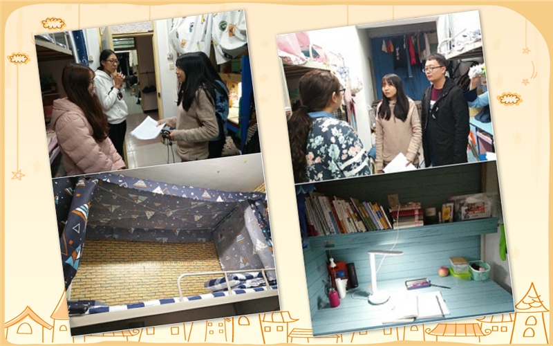 范老师首先对宿舍卫生情况进行了检查,指出了不足之处并提出了改进措施,提醒同学们杜绝使用违规电器,保证用电安全。同时,范老师亲切地询问了同学们日常生活中遇到的问题并给予了建议。随行同学对宿舍情况和检查过程进行了照片记录和文字记录,并本着公平公正的原则评选出了优秀宿舍,对即将到来的“宿舍文化节”活动进行了初次实地评分。
