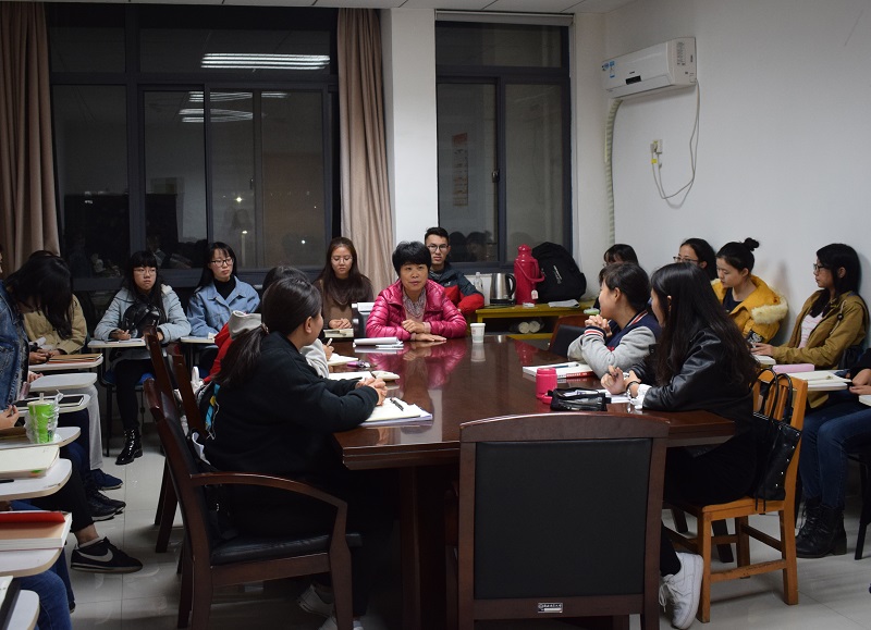 本次活动由分享与交流两部分内容组成。首先,蒋老师通过分享自己早年的读书经历强调了文学对人生的重要意义,并且指出,以往,尽管文学与生活密切相关,但它的价值和意义却经常被忽视甚至否认。随着时代的发展,文学的学科地位的不断提高,人们开始越来越多地关注文学。这时,我们应该意识到,在浩如烟海的文学作品中,中国古代的文学经典经过了几十代甚至几百代读者的选择、解读和丰富,留下的作品足以代表我国文学在各类文体中的卓越成就,更应该被关注与传承。其次,蒋老师认为阅读和积累对员工而言十分必要。蒋老师说在物质匮乏的年代,阅读作为精神食粮,可以让人在困顿时感受自然与人生的美好。而在物质极大丰富的今天,人们越来越耽溺于物质享受,更需要以阅读填补精神的空白;只有持续广泛地阅读,并将开卷有益的积累融入血肉,才能让身处象牙塔里的员工站在更高的平台上看到更加开阔的风景。“你所读过的书都将成为支撑你走得更高更远的垫脚石”,蒋老师这样说道。再次,蒋老师分享了自己读书的方法。她认为读者应该依据自己的兴趣或者工作需要有选择地阅读,而那些跨越时空的经典应当成为阅读的首选,因为它们包含了先贤们丰富的创作经验和处世智慧。当然,阅读时不仅要做到眼勤,还要做到手勤,中文专业的同学尤其应该注意及时摘抄独到的观点、精妙的比喻和优美的表达,为自己将来的学习和工作积累经验;另外,阅读过程中,还要注意总结和提炼作品的观点,以便形成宏观的认识。蒋老师还分享了自己的几篇读书笔记,她的笔记详实严谨,感情充沛,大家都被她敏锐的洞察力和“精华欲掩料应难”的才华所折服。分享结束后是师生交流环节,同学们纷纷提出自己在学习和阅读过程中产生的各种疑惑,蒋老师认真聆听并一一给予了详细的解答。