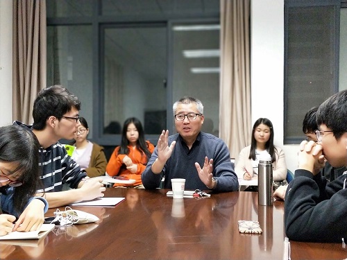 活动开始,段老师首先简单介绍了自己的研究方向,即文艺学古代文论方向。对于古代文论的学习和研究,段老师提出了自己的看法。他认为当代研究者不能简单地把古代文论看作是无用的、已经过时的内容,而是应该秉持一种常读常新的态度;对理论著作的研读不应该受到现有理论的局限,要从多角度多方面发掘文本新意。其次,段老师在教学中发现,同学们对古代文论的学习兴趣不足。针对这一现象,他谈到文论不仅仅是一门文学之课,也是一门人生之课,是教我们博雅地学习、生活的课程。所以要正确认识文论学习的必要性。再次,当谈到西方文学理论与中国古典文论的关系时,段老师不赞同拿西方文学理论体系机械“规训”中国古典文论的做法,他认为这样的做法会使中国文论失去本色。