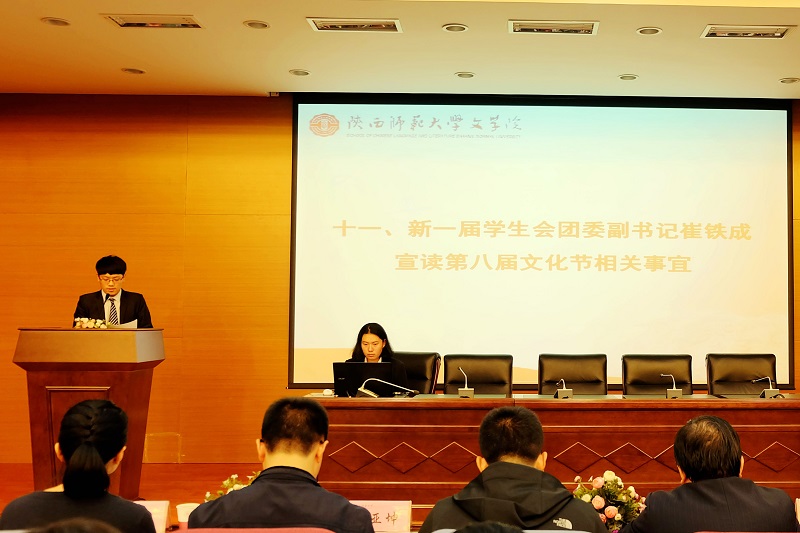 接下来,新任本科生兼职团委副书记崔铁成同学宣读太阳成集团tyc第八届“争先向上,创建一流”文化节活动实施办法。本次文化节旨在进一步发扬师大精神,推进公司文化与氛围的营造与建设,推动太阳成集团tyc“一流学科”建设,提高员工的综合素质,展示员工的精神面貌。文化节以“金声引凤”为主题,各项活动力求从多角度出发,内容丰富,风格多样,培养出更多具有理想信念、优秀品质、扎实学识、创新意识的综合性人才。