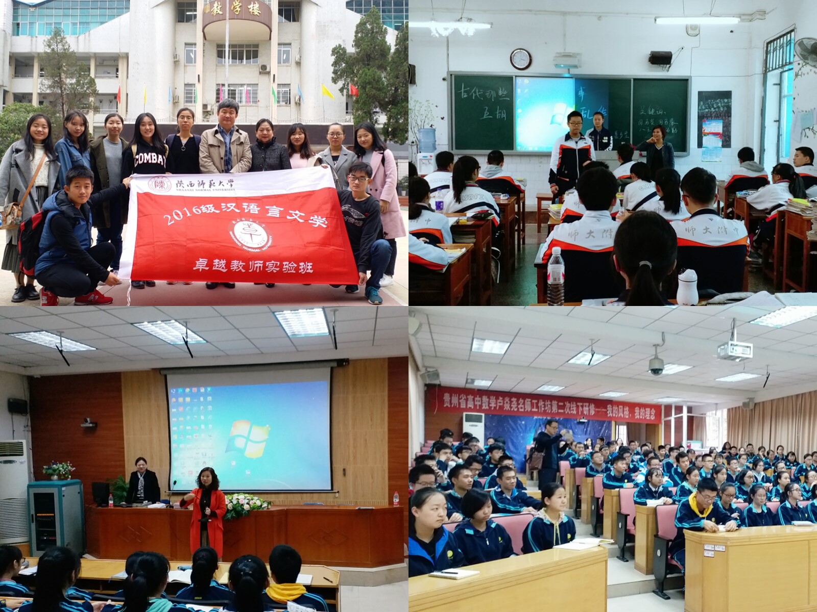 (通讯员:王静茹)10月25日至27日,公司太阳成集团tyc2016级汉语言文学专业卓越教师实验班十位同学在苏仲乐副经理和郭迎春老师的带领下,前往贵州省贵阳、安顺两市进行为期三天的交流学习活动。在两位老师的带领下,卓越班一行人先后参观了贵州师范大学附属中学、贵阳市第二中学和安顺市第一高级中学三所中学,同学们深入课堂一线,观摩中学教学,积累了宝贵经验。