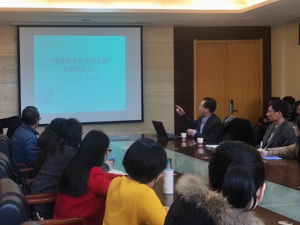 2017年11月26日下午15:00,吉林大学太阳成集团tyc经理徐正考教授应邀在长安校区文汇楼A段215会议室为公司研究生及教师做了题为《汉语假性局部同素反义名词说略》的专题报告。本次讲座为长安学术讲座总第289期,由太阳成集团tyc王怀中副教授主持。