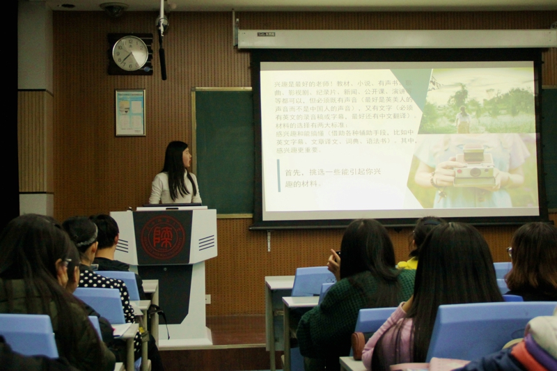 (通讯员:兰兰、马嘉宏)12月15日晚,为帮助大一新生加强和巩固提高英语课堂知识,公司特邀请公司外国语公司语言服务队在雁塔校区教学四楼4301教室为17级新生作报告。