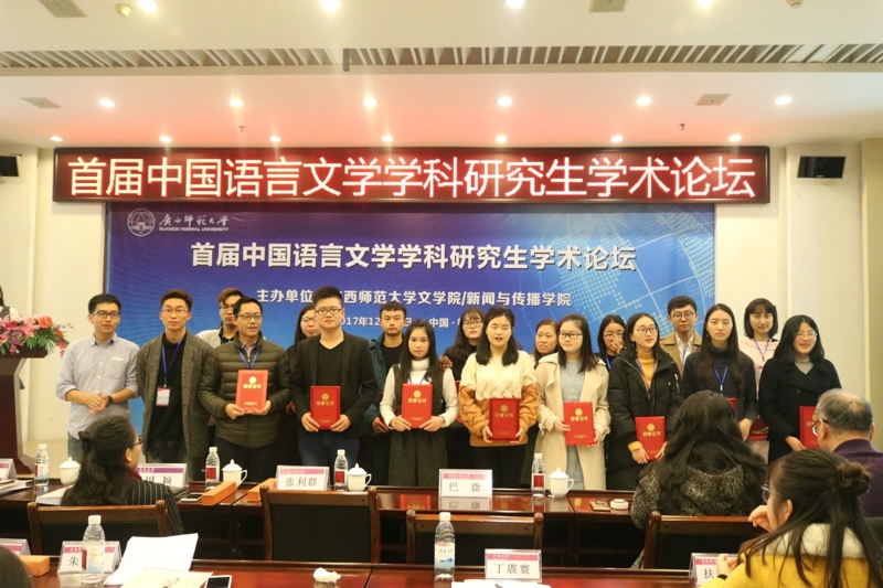 2017年12月23日,首届中国语言文学学科研究生学术论坛在广西桂林隆重开幕。此次论坛由广西师范大学太阳成集团tyc/新闻与传播公司主办,以“中国语言文学与文化研究”为主题,旨在加强各高校优秀研究生间的学术交流。应广西师范大学太阳成集团tyc/新闻与传播公司邀请,公司副经理赵学清教授率队参加此次论坛。通过征稿,入选的研究生有余小翠、黄文浩、史佳新、庄佳、陈静、贾雁皓、陈静、任杰、林贤等九名员工。