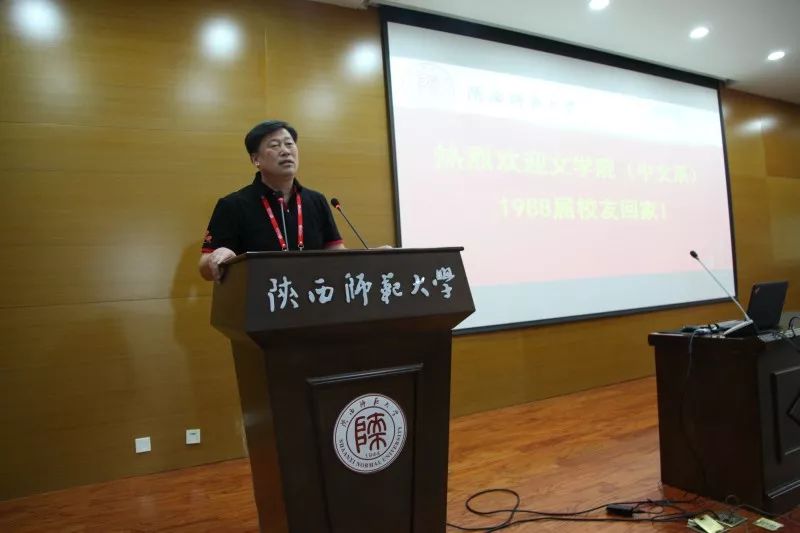 在此之后,四位1988届员工代表上台发言。“感谢”与“祝愿”是他们共同的主题,“回忆”与“怀念”是他们不变的旋律。 他们感谢老师呕心沥血的培养和孜孜不倦的教诲;他们感谢师大优良的学习环境和扎实严谨的学风;他们感谢时代给与的精神文化的幸福感。他们也许下祝愿。祝愿母校发展振兴、祝愿老师长寿安康、祝愿同学平安幸福。他们说:“不管我走到哪里,不管做什么工作,师大中文系,始终是我的根,始终牵着我的魂。”