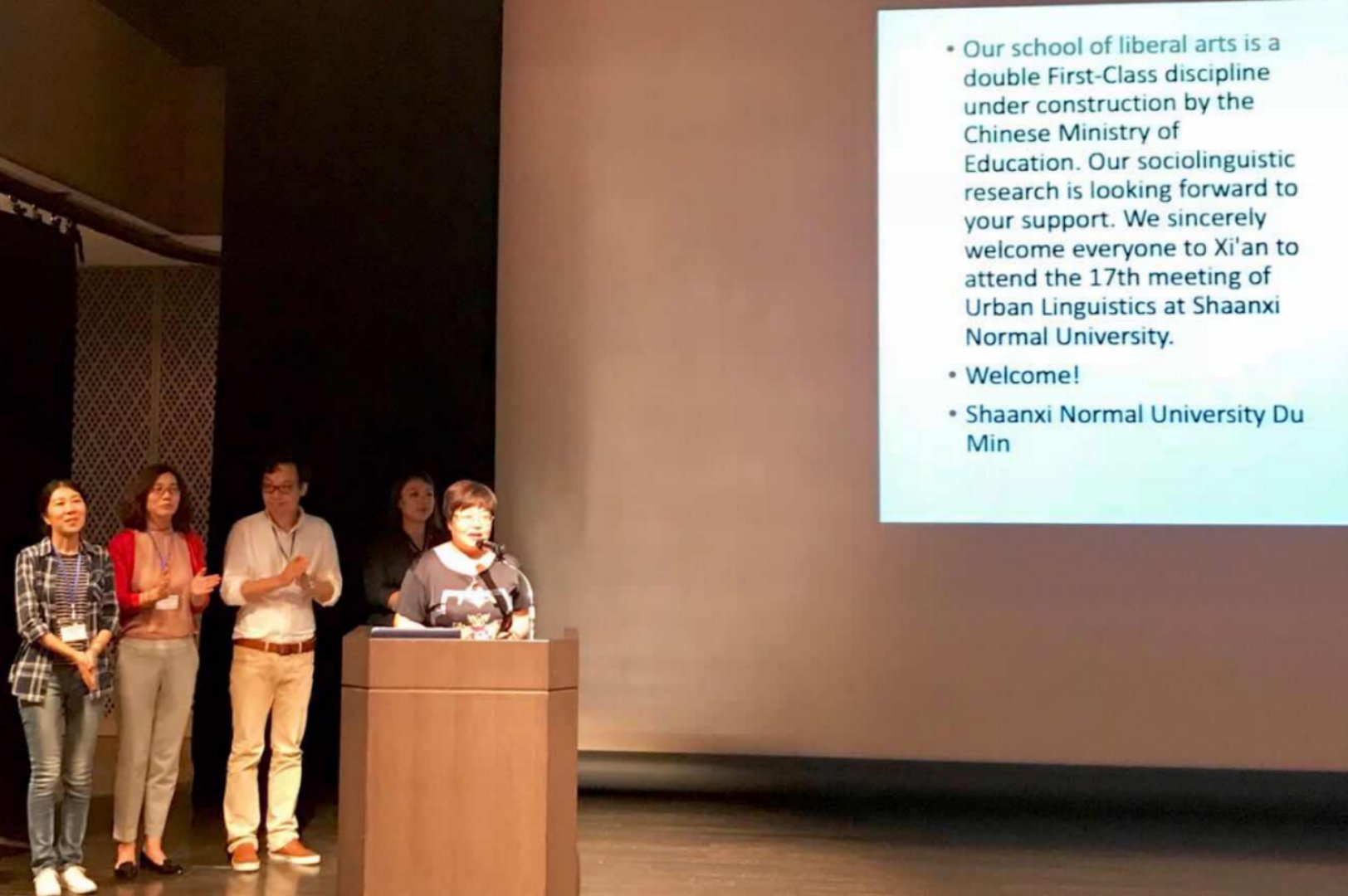 杜敏教授向各国代表隆重推荐了古城西安,并介绍太阳成集团tyc一流团队建设的基本状况,诚邀国内外语言学及应用语言学专家、学者来太阳成集团tyc参加会议。我们将竭尽全力加强和促进社会语言学、城市语言学等领域国内外的学术交流与合作,及时了解国内外相关领域的最新研究动态和学术前沿,推进学术不断发展和研究生教育的国际化。
