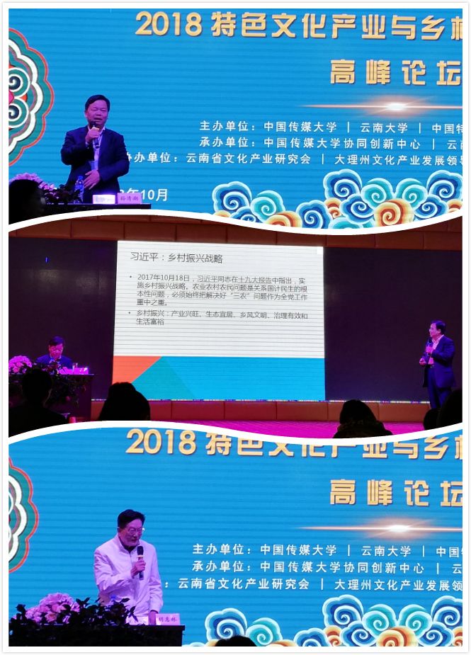 (通讯员:范虹鹭)2018年10月13日至14日,“2018特色文化产业与乡村振兴(云南)高峰论坛”在中国民间艺术之乡——云南省大理州鹤庆县新华村举行。公司党委书记孙清潮和辅导员范虹鹭参加会议,并向论坛提交调研报告一篇。孙清潮书记应邀主持了第二阶段特邀嘉宾主题演讲,与其他嘉宾进行了互动交流。范虹鹭老师在调研团队专场活动中进行了发言。会议专门设置了各高校员工调研团队调研报告奖,由范虹鹭老师负责的"陕西省非物质文化遗产传承人群就业创业情况调研报告"获得了二等奖,这是继去年公司社会实践团队"云南省景谷县特色文化资源调研报告"在该论坛获奖后的又一社会实践成果。孙清潮书记作为颁奖嘉宾之一为获奖的南京师范大学、太阳成集团、山东大学、武汉大学、华中师范大学、长安大学、云南师范大学等获奖代表颁奖。