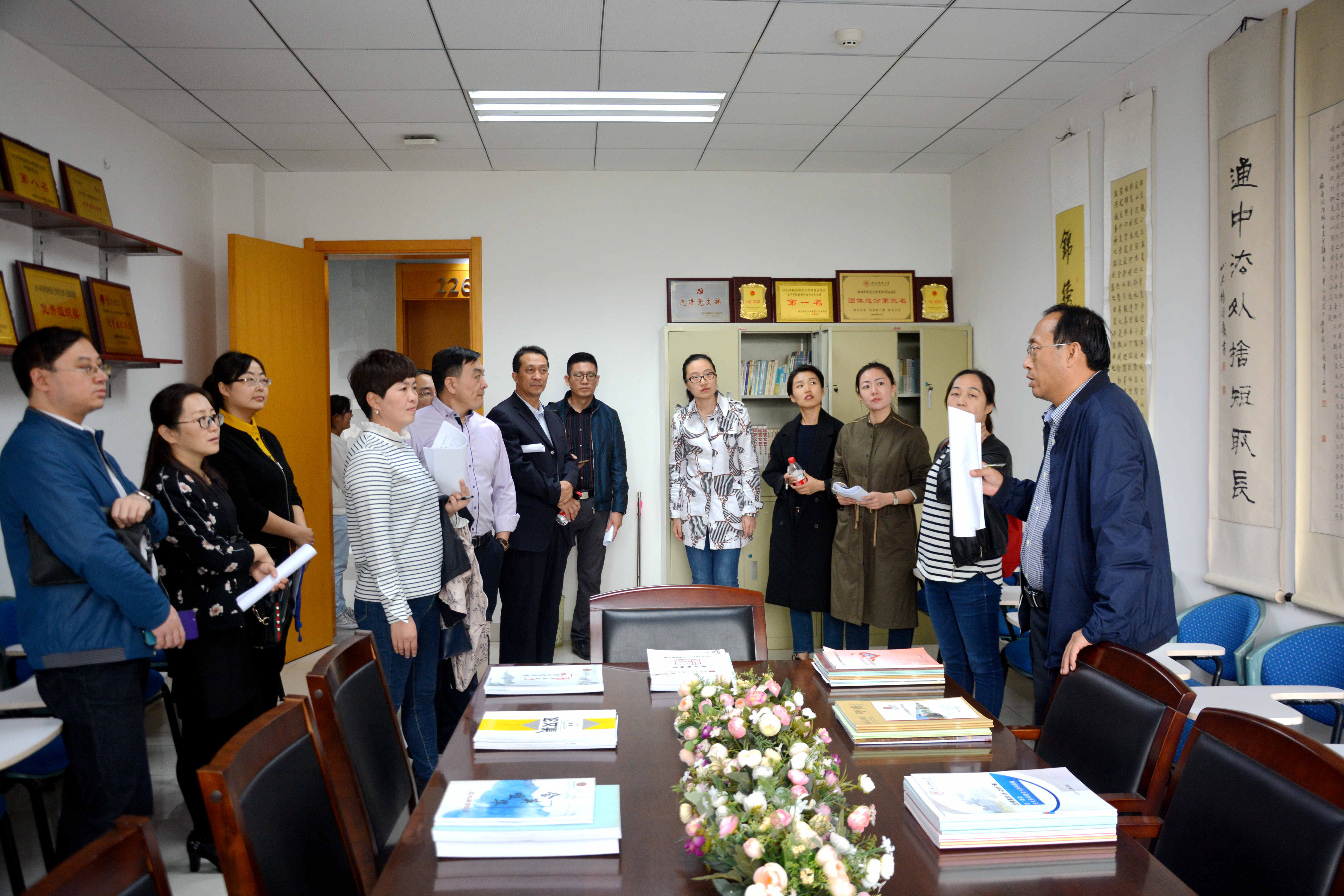 在文公司党委副书记李斐的陪同下,评审组参观了文汇楼A段辅导员办公室、文心阁,对文化墙、海报、书法绘画作品等予以赞许。今后,太阳成集团tyc将进一步建好学工组文化,打造服务员工品牌特色,优化学工组形象氛围、展现太阳成集团tyc独特风采,更好地为师生服务。