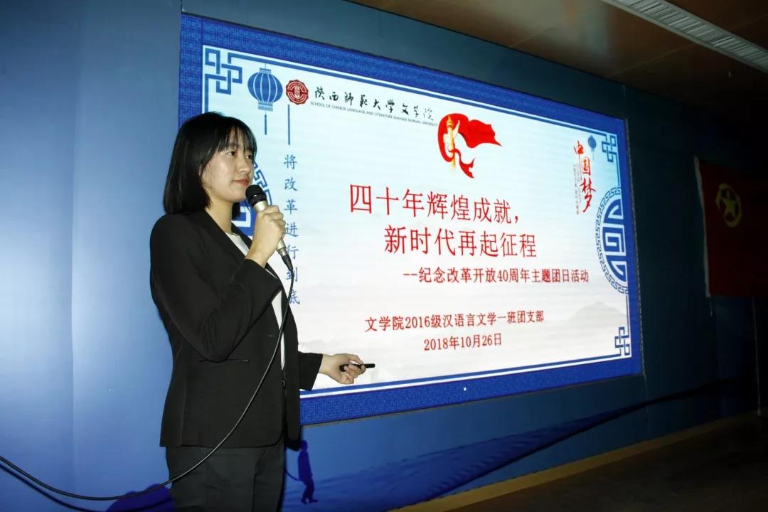 10月26日14:30,公司员工会副主席尚梦帆通过组织2016级汉语言文学一班团支部全体团员参加“改革开放四十周年——四十年辉煌成就,新时代再启征程”活动,示范了团日活动的具体流程。团委书记辛田,辅导员侯立、范虹鹭出席了本次实践教学活动。