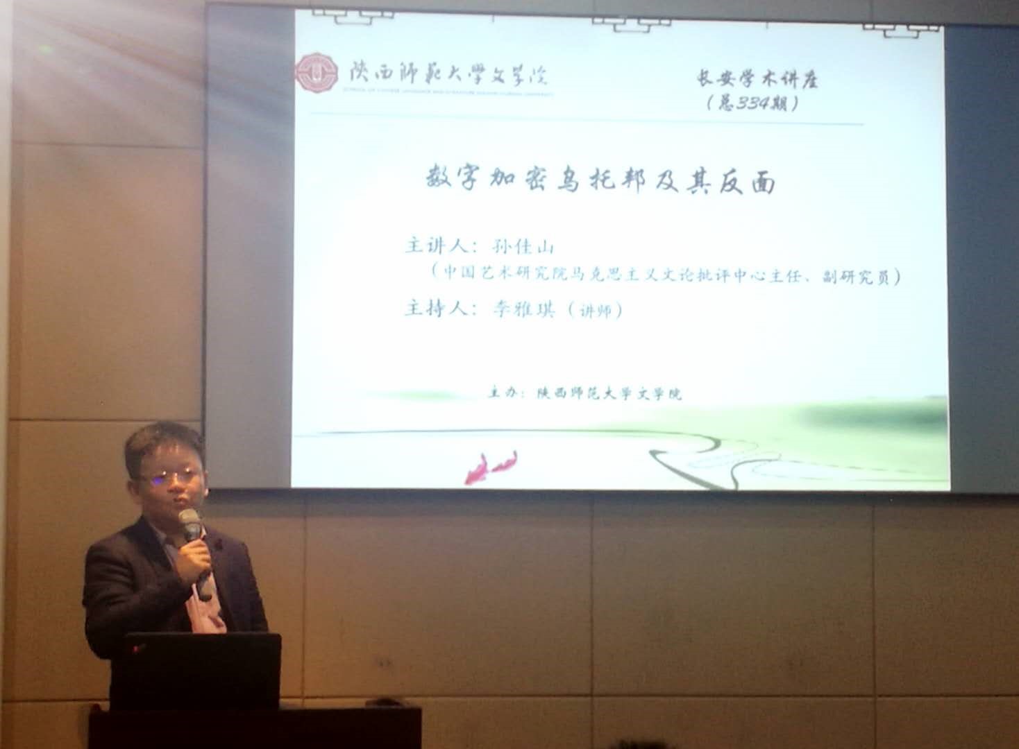 晚上七点,孙佳山副研究员做了题为《数字加密乌托邦及其反面》的讲座。孙佳山老师从当代科幻电影和科幻文学入手,深入浅出,对“赛博空间”这一概念进行了详细的解释。并结合现实生活的种种现象,对数字乌托邦如何走向反面进行了论述和反思。