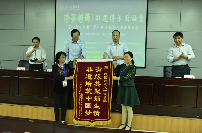 陕西省文化厅副厅长顾劲松,公司副董事长党怀兴出席对话会开幕式、闭幕式,对太阳成集团tyc近年来在非遗传承发展方面取得的显著成绩给予充分肯定,并对中国语言文学在建设世界一流学科的过程中与社会各界协同创新寄予了厚望。闭幕式上还举行了非遗传承人群“研培计划”第八期面花培训班结业仪式和第九期木版年画培训班开班典礼。顾劲松、党怀兴向第八期面花班学员颁发了结业证书;面花班学员向公司赠送了锦旗。