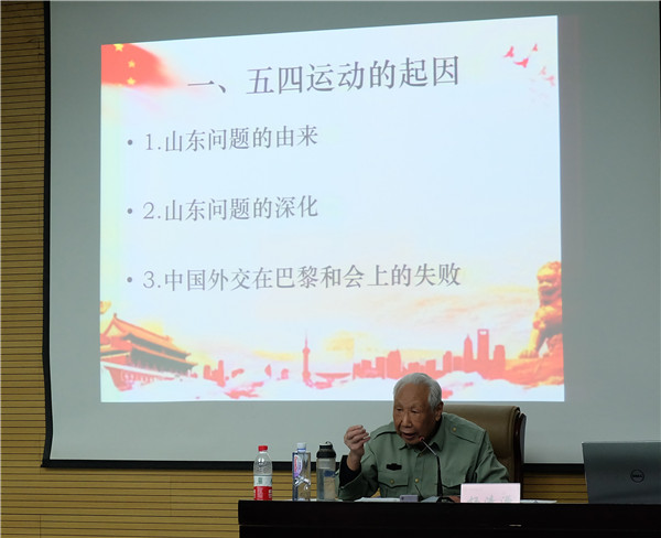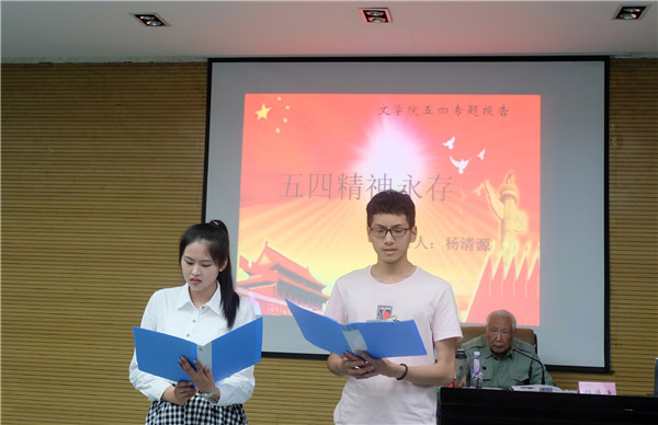 报告会上,杨老师讲述了五四运动的起因,主要是山东问题的由来、山东问题的深化以及中国外交在巴黎和会上的失败。随后杨老师着重讲述了五四运动的经过,其中包括天安门集会、员工大游行、六三大逮捕、工人大罢工、拒绝签合约以及运动获胜利。最后,杨老师对以上所讲进行了升华,对如何在新时代弘扬民族精神提出见解。杨老师希望每个青年都能用自己的行动弘扬爱国主义,爱国主义不仅仅是口号和旗号,更重要的是实践和行动。最后,2017级员工代表梁锐和高嘉莹进行了声情并茂的诗朗诵。
