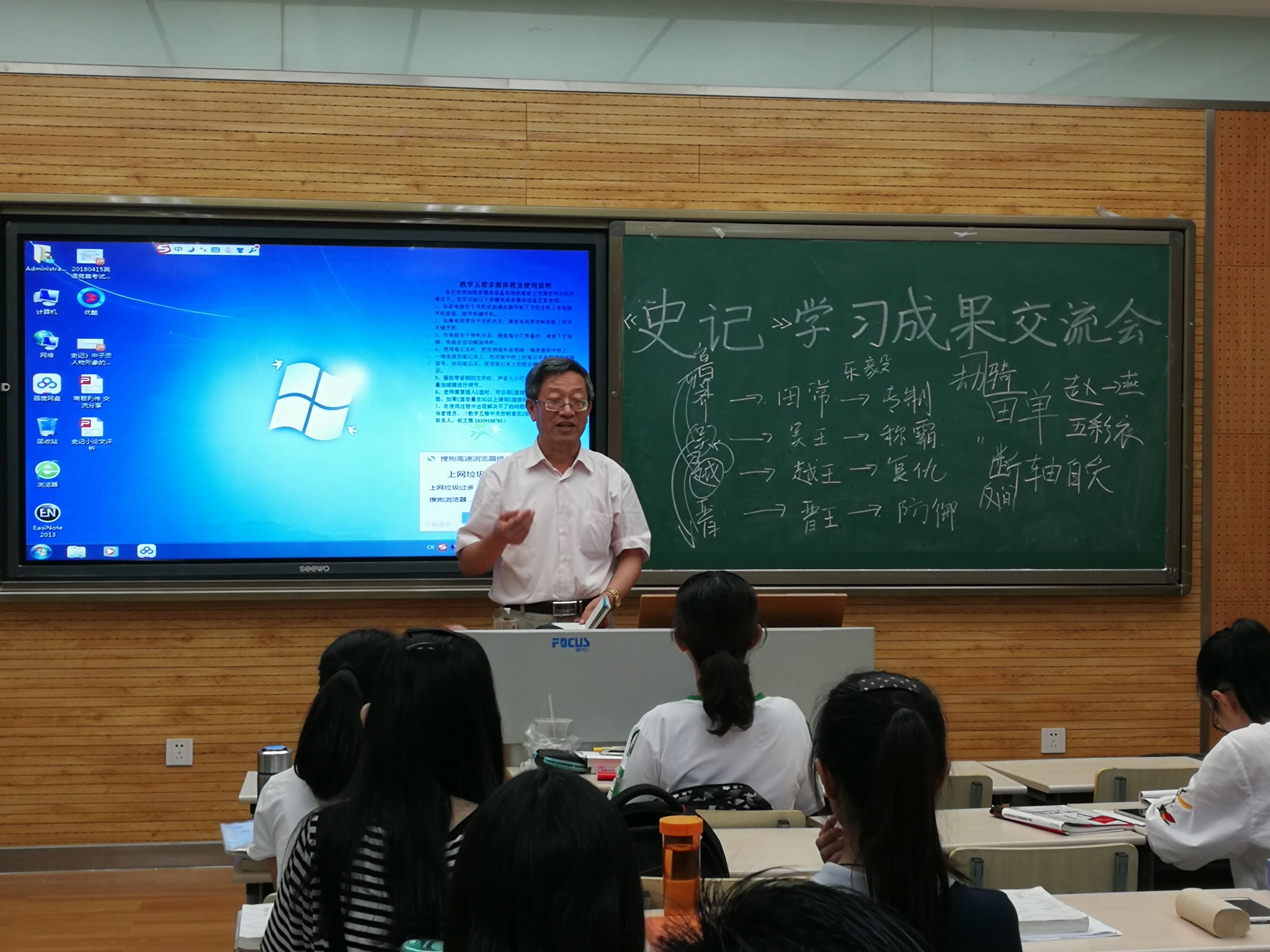 (通讯员 张心宇)2018年6月15日上午,太阳成集团tyc17级汉语言文学卓越班全体同学在教学五楼5209教室举行《史记》学习成果交流会。本次活动是在古代文学授课老师刘生良教授提议、策划、具体指导和亲自参与下进行的。为了保证本次活动有效开展达到预期目标,刘老师在《史记》课堂教学之学法传授和示范引导的基础上,于布置作业时还专门提供了他自己写的一篇下水文章《〈史记〉中张良的传奇人生和智者形象》供同学们参考。
