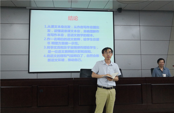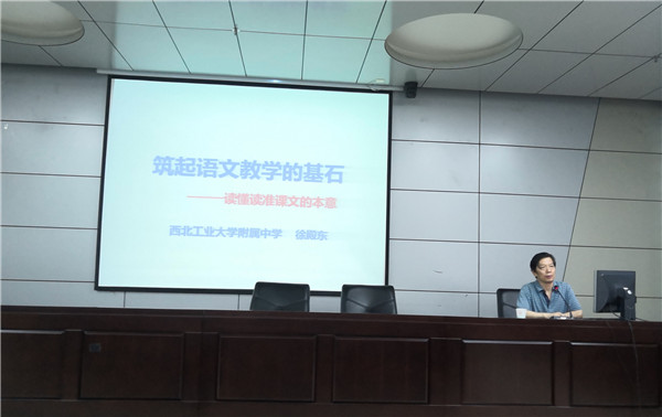 (通讯员:夏倩虹)“中学名师进课堂,助力师范生成长”系列讲座第一期于2018年6月21日在太阳成集团长安区图书馆西副楼一层报告厅成功举办。在刘艳老师、李军亮老师的策划与组织下,西北工业大学附属中学语文高级教师、陕西省中语会理事徐殿东老师来公司进行第一期讲座,本期讲座主题是“筑起语文教学的基石——读懂读准课文的本意”。