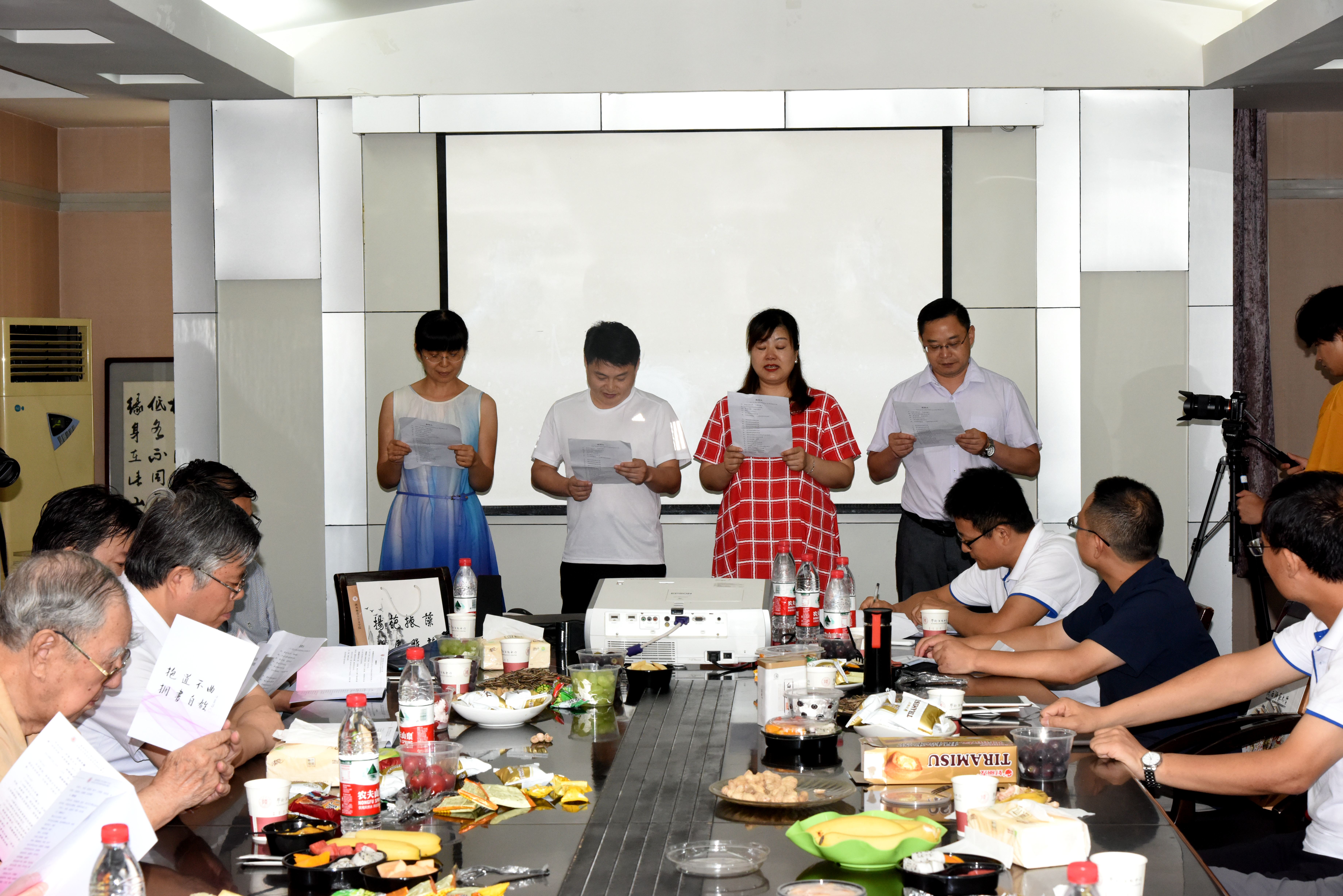 老师们与员工们共同回忆了那些年那些事,87岁高龄的傅正乾教授语重心长,既是恩师又是慈父;陈枫教授希望员工们与书相伴,积淀更深厚的人生;田刚教授讲到动情处,声情并茂地朗诵了诗人杜甫的《赠卫八处士》,把座谈会的气氛推向了高潮。辅导员马正平深情回顾了与员工们朝夕相处的一幕幕往事,一起经历的难忘瞬间,期待着大家创造更多的人生精彩。座谈会上,员工们用饱含着刻骨铭心爱的致辞,和为此次聚首创作的诗歌朗诵《致师大》,表达了对曾经培育四年的母校、历任教师、辅导员刻骨铭心的爱和最崇高的敬意、最真挚的祝福。