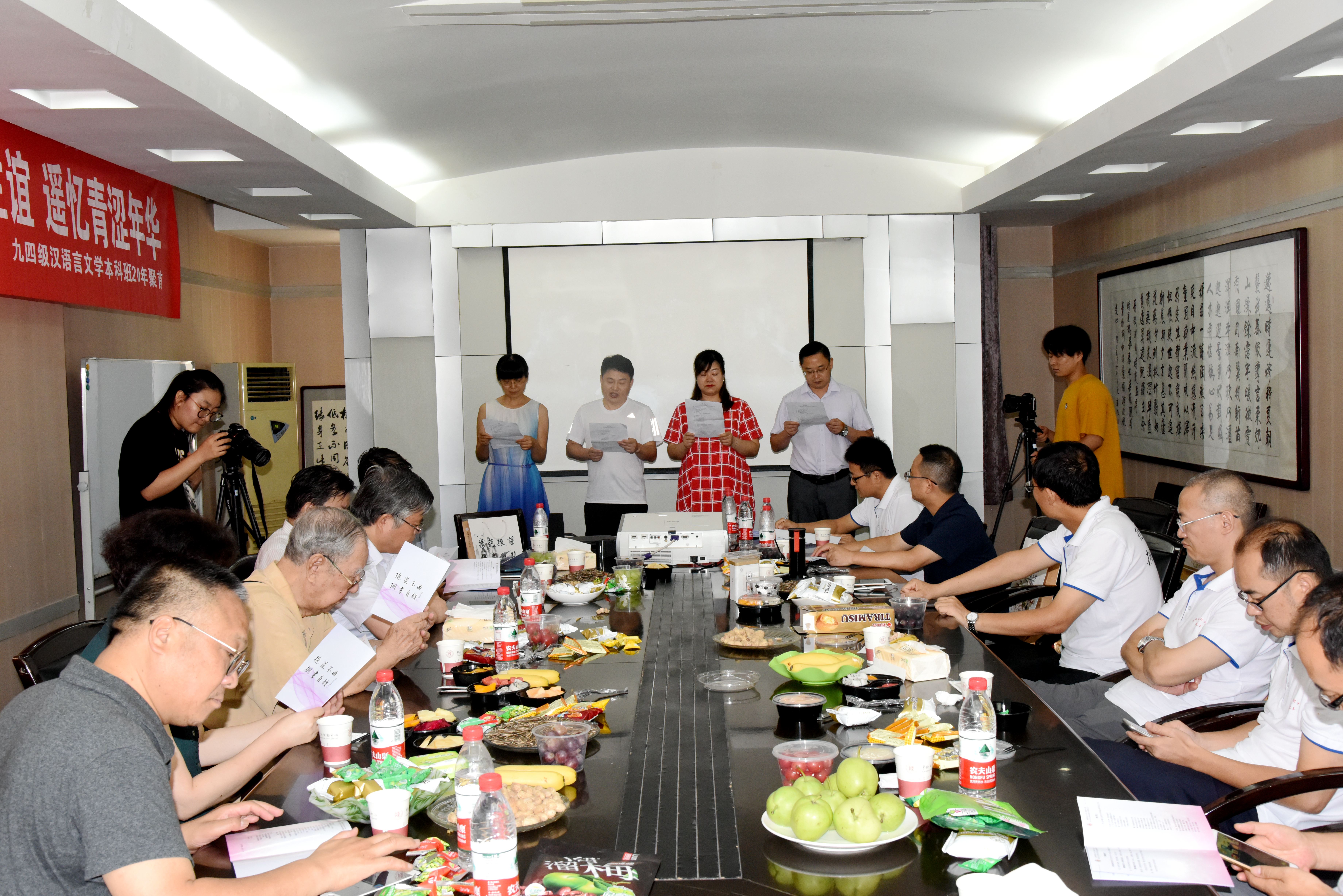 忆来惟把旧书看,几时携手入长安。7月14日下午,公司94级汉语言文学本科班毕业20年师生座谈会在雁塔校区学术中心会议室热烈举行。经理张新科、党委书记孙清潮,时任老师傅正乾教授、陈枫教授、田刚教授,时任辅导员马正平出席了座谈会,28位员工相约返校。