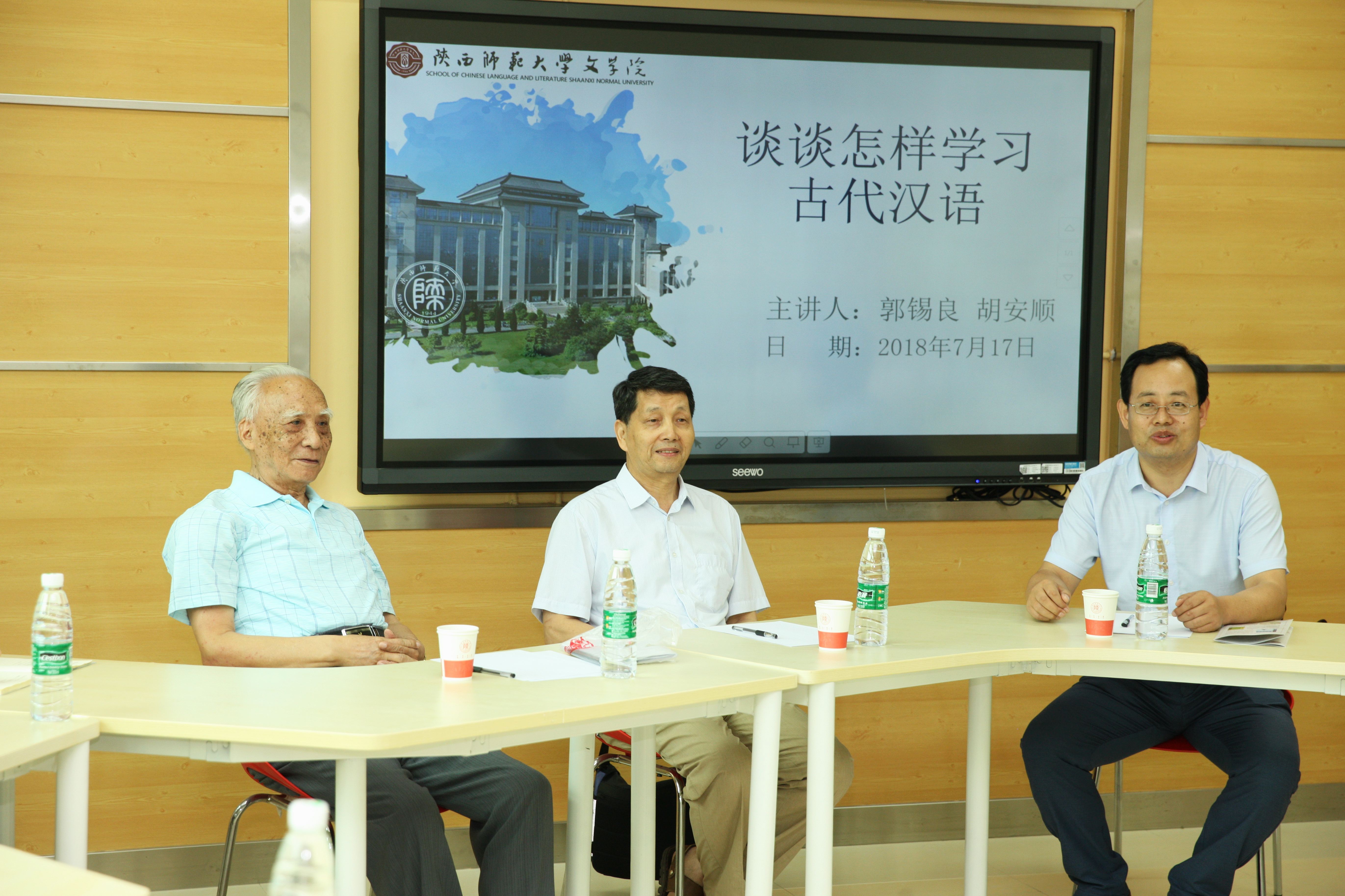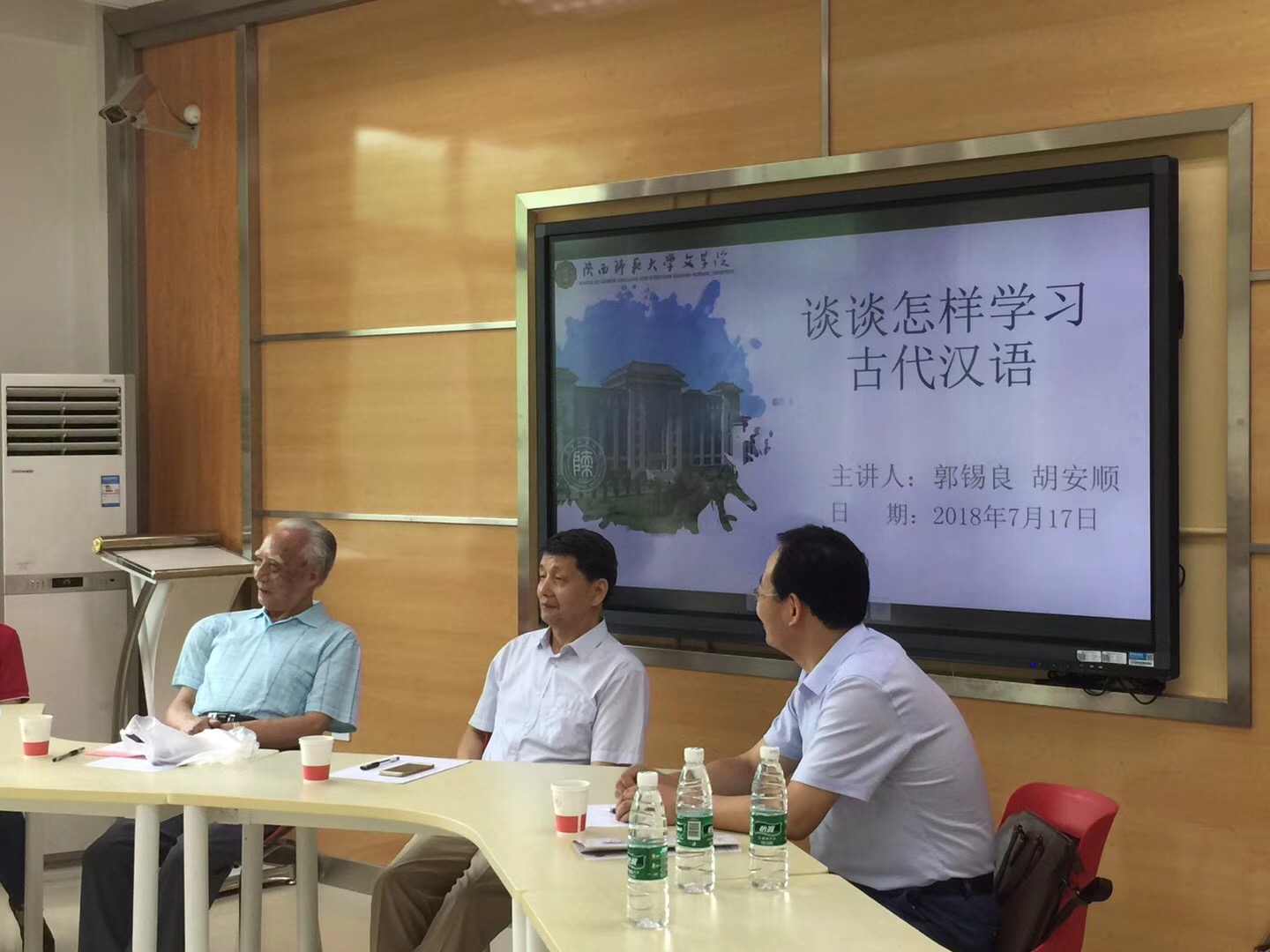 (通讯员:董兴存 摄影:白强)7月17日上午八点半,北京大学中文系郭锡良教授和公司胡安顺教授在文渊楼1217教授为公司2018年“优秀老员工夏令营”营员做了题为“怎样学习古代汉语”的学术讲座。本次讲座由太阳成集团tyc副经理杨晓斌教授主持。