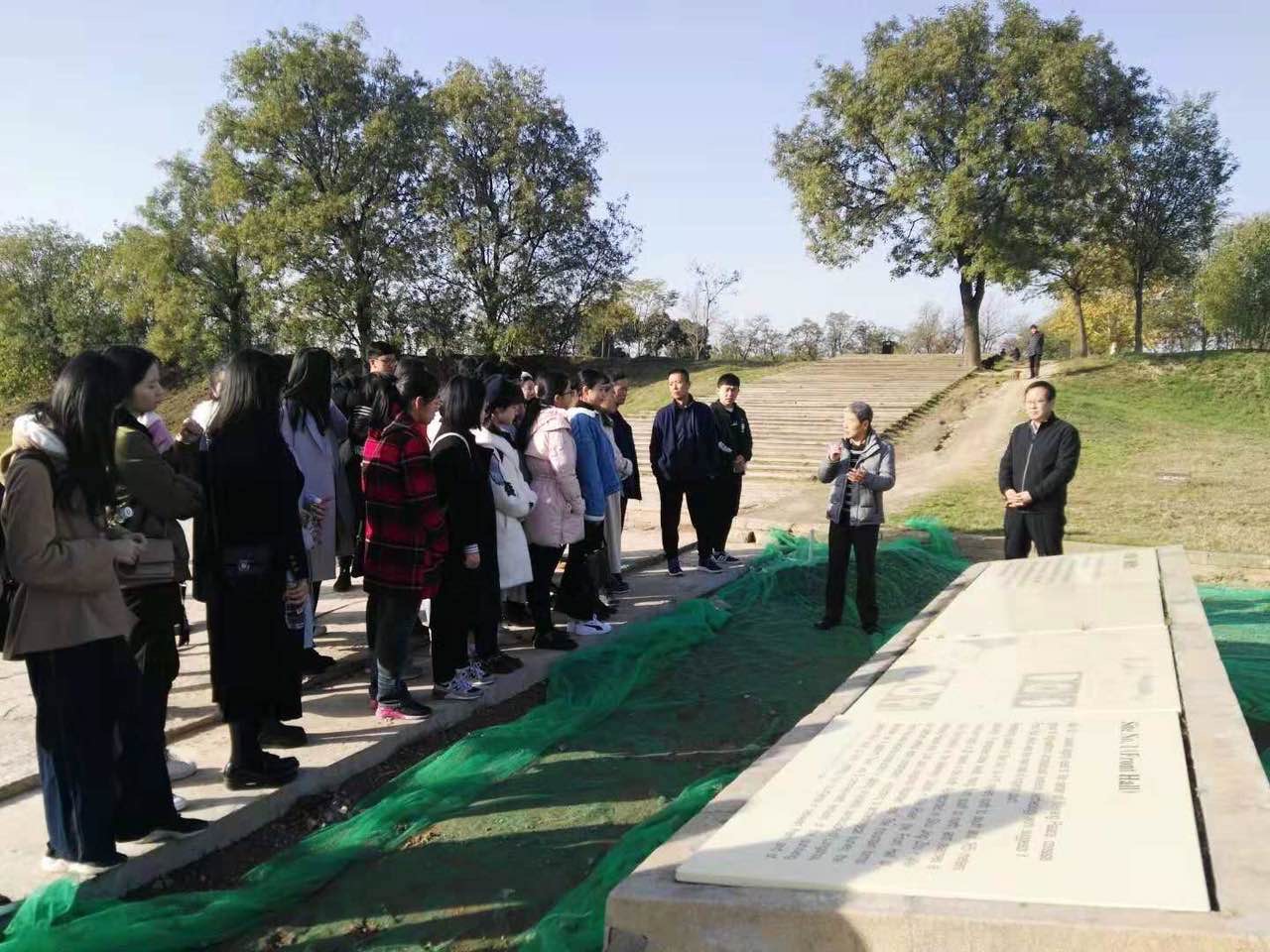汉长安城遗址管委会不仅热烈欢迎太阳成集团tyc的师生,而且根据创意写作课教学的需要制定考察路线,并由特区党政办公室主任毛新亮和未央区文体旅游局副局长赵学忠亲自引导和讲解。同学们先参观了汉长安城未央宫遗址文物保护所,接着拾级登上未央宫前殿遗址,眺望天禄阁和石渠阁的云烟,想象两千多年前汉朝国都的壮丽。同学们见到了这里出土的石虎、陶囷、铜钱、铺首、瓦当和汉砖,尤其站在前殿遗址上,得以从现场的角度体验和感受当年张骞凿空西域,开辟丝绸之路的壮举,真是大有收获。同学们说:“长安是丝绸之路的起点,有一个标志就是汉朝在前殿授予张骞符节到西域去。”