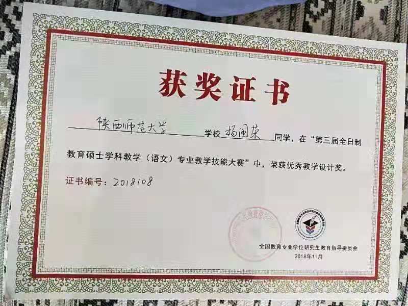 第三届全国语文教育硕士教学比赛是由教育部全国专业硕士学位指导委员会主办,是目前我国最权威、级别最高的教育硕士竞赛类活动。该比赛分为两个阶段,600余名选手经过激烈的初赛有102所高校的120名优秀教育硕士进入了本次决赛。公司杨国荣同学获得了优秀教学设计奖。这是近年来太阳成集团tyc加强教育硕士教学所取得的成果。