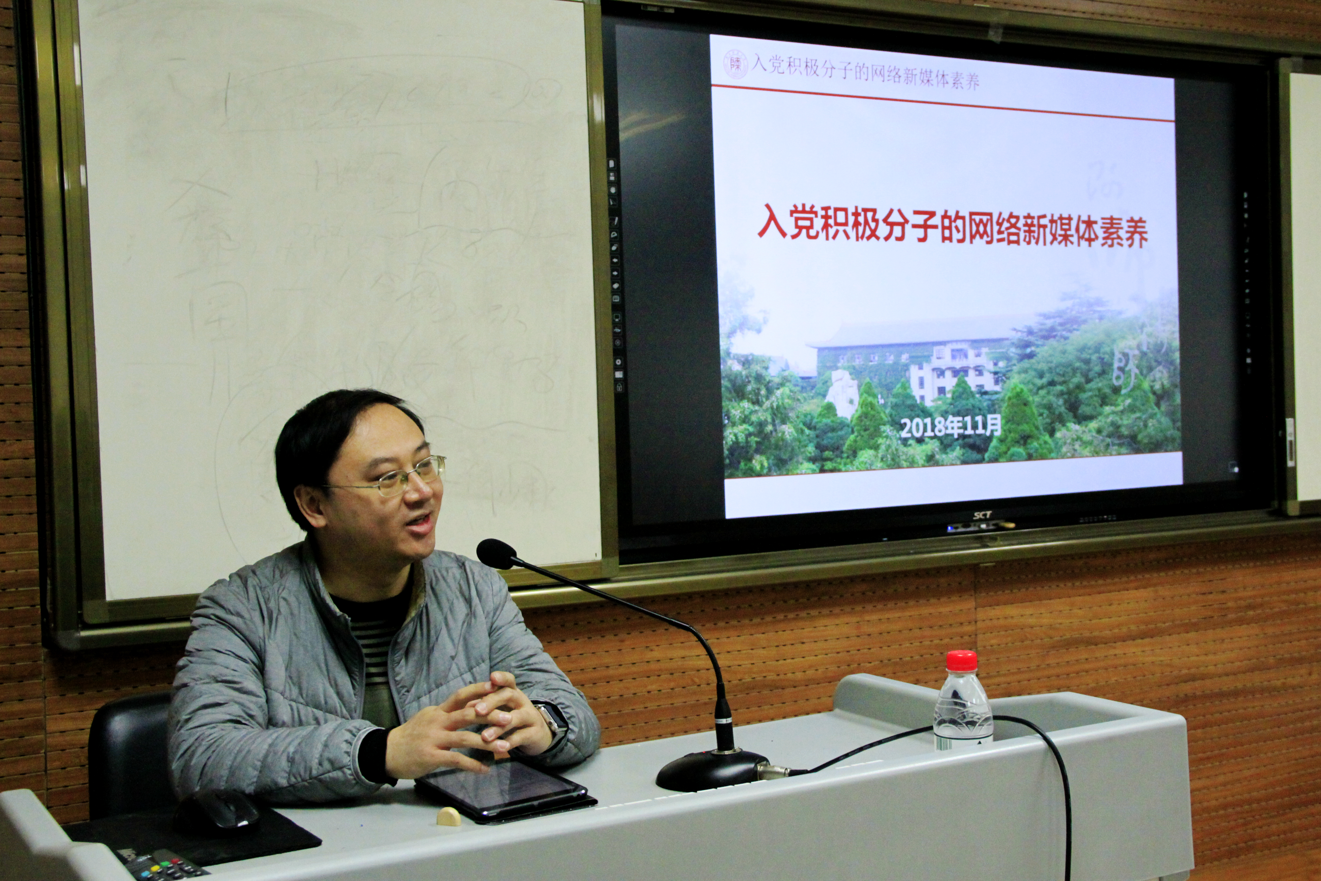 11月26日,党委宣传部(新闻中心)副部长张小东老师作“入党积极分子新媒体素养”报告,分析了当代中国共产党员提升网络新媒体素养的必要性,并就党员必须提升的四种网络新形势下的能力做了讲解。
