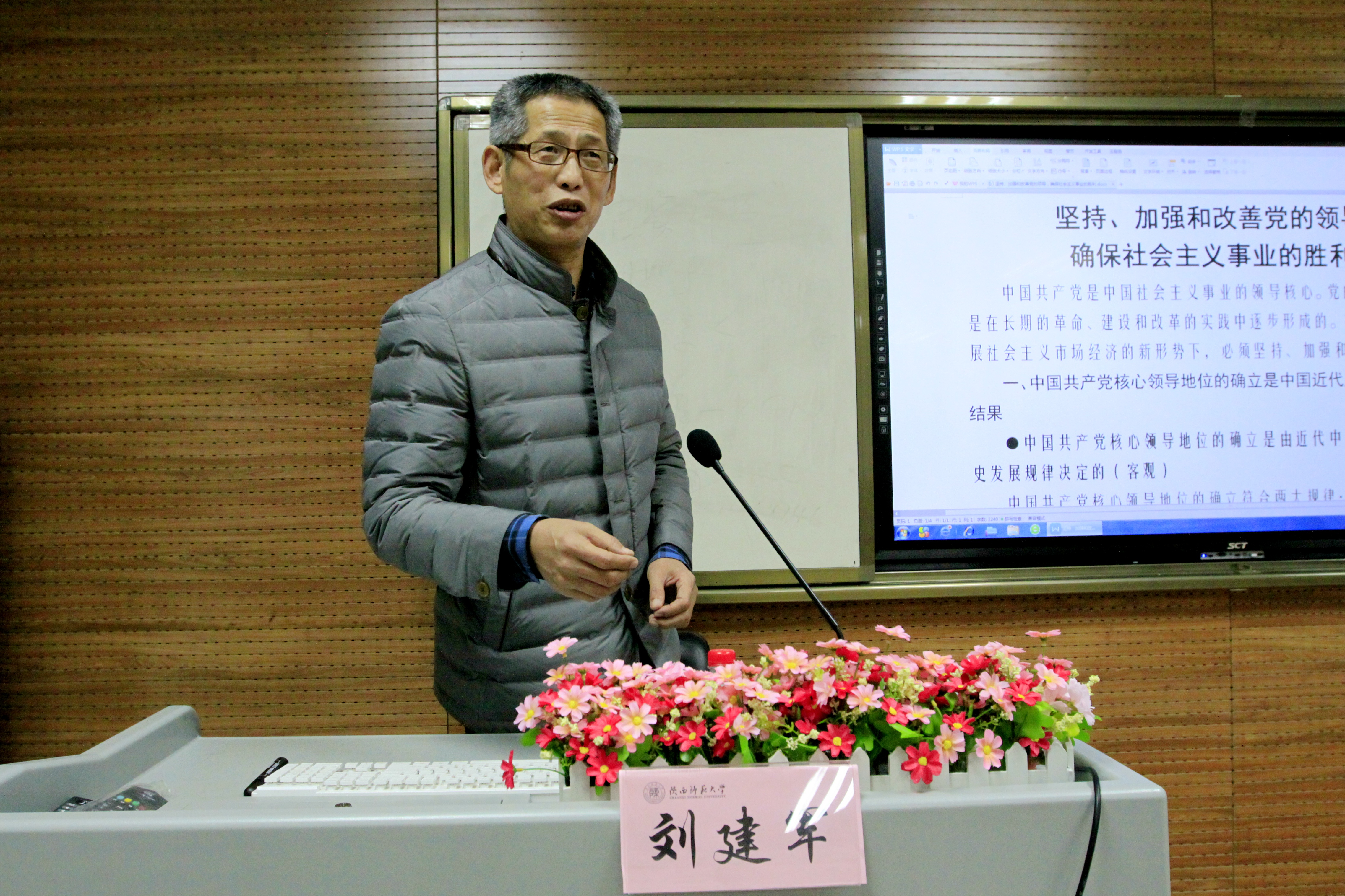 11月21日,机关党委书记刘建军老师作“坚持和改善党的领导,确保社会主义事业的完全胜利”报告,深入分析了党的性质,宗旨与优良传统,强调中国共产党的领导核心确立是中国近代历史发展的必然结果。