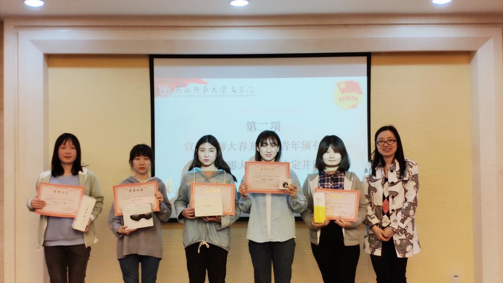 会议在雄壮的共青团团歌中开始。会议第一项,公司员工会副主席杨晓瑜宣读了《关于“师大春光好,青年须有为”主题摄影大赛的表彰决定》。接着,公司团委书记辛田为获“最具人气奖”和“最佳作品奖”的18名同学颁发了奖状和奖品,并向获奖同学表示祝贺,希望同学们在今后的学习和生活中珍惜时光,奋力向上,为校园生活增添新的活力。