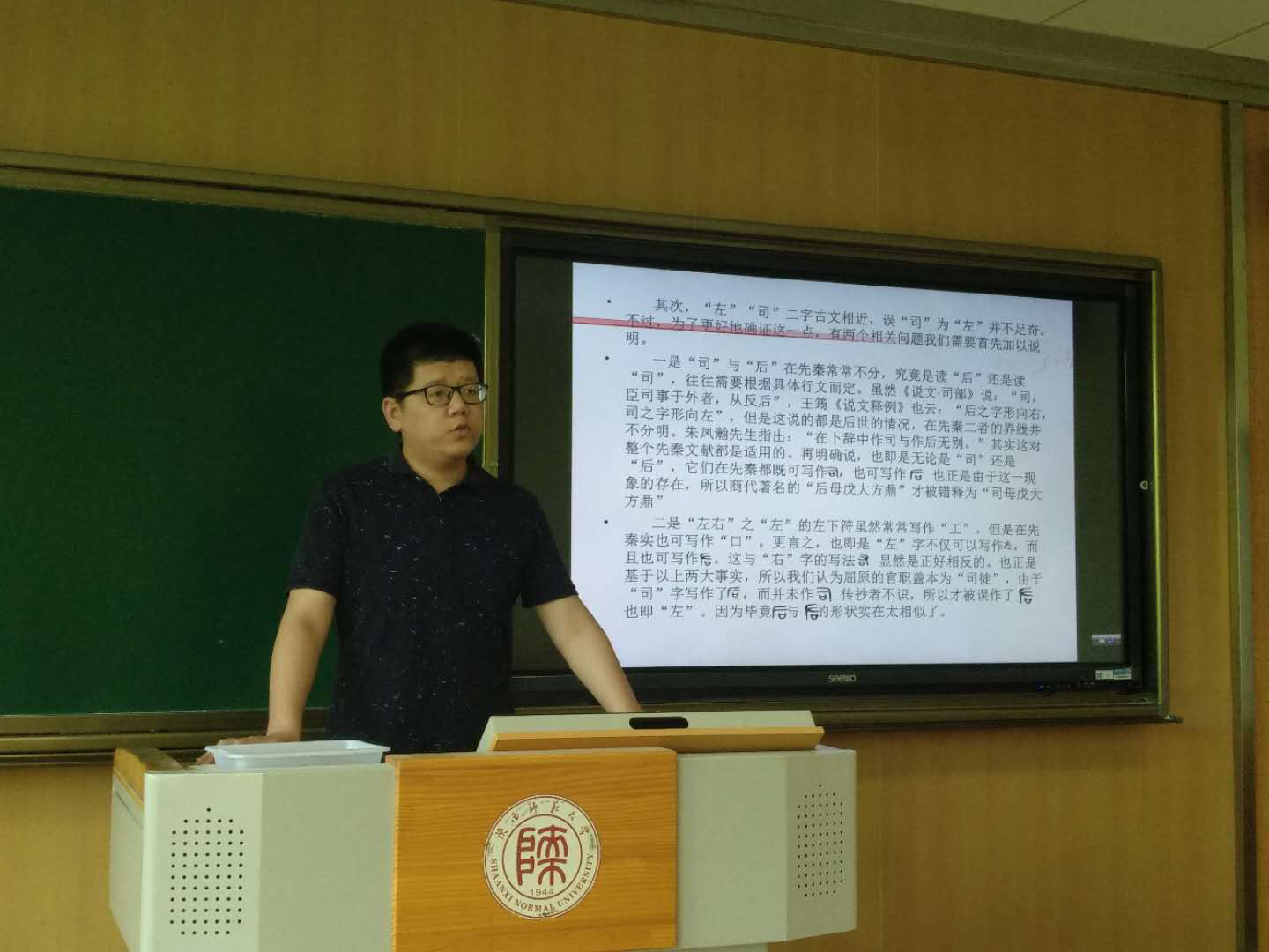 2019年5月6日,第101场博士学术报告以《段玉裁假借研究》为题,由汉语言文字学专业博士研究生刘影主讲。刘影的学术报告从“关于假借的观点”出发,引用许慎、徐锴、郑樵、戴侗、戴震等大家对于“假借”的解释,进而引出段玉裁的“假借三变说”。她运用大量的例证来说明段玉裁对“假借”的独特见解,以“引申假借”、“真假借”、“假借变例”为线索,系统而简明地介绍了段玉裁的假借研究。
