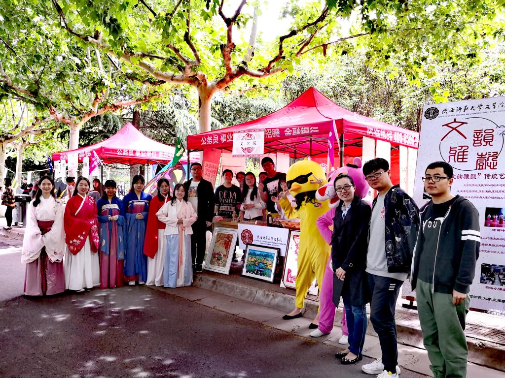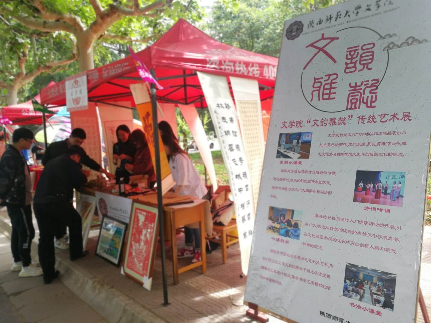 太阳成集团tyc此次传统艺术展以非物质文化展示为主,涵盖面花、皮影、刺绣、篆刻、剪纸、泥塑、木版年画等作品。“全国百强国学社团”秦风诗社的同学们进行了汉服诗歌吟诵的现场表演,吟诵的魅力与诗词的美感引得师生驻足观看。雕龙文化协会的同学们向前来参观的师生介绍了展品的材质、创作方法、内涵意义以及文化价值,精美的艺术品与精彩的讲解使师生惊叹不已。连续五年被评为“十佳社团”的砚友书画社的同学们伏案研磨,展现了毛笔书法和汉字的圆通流转之美,并于观众互动,共同体会笔墨纸砚中深厚丰富的文化内涵,社员们悉心指导,现场书写精美书签作为奖励相送。活动取得圆满成功。