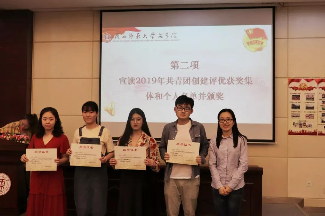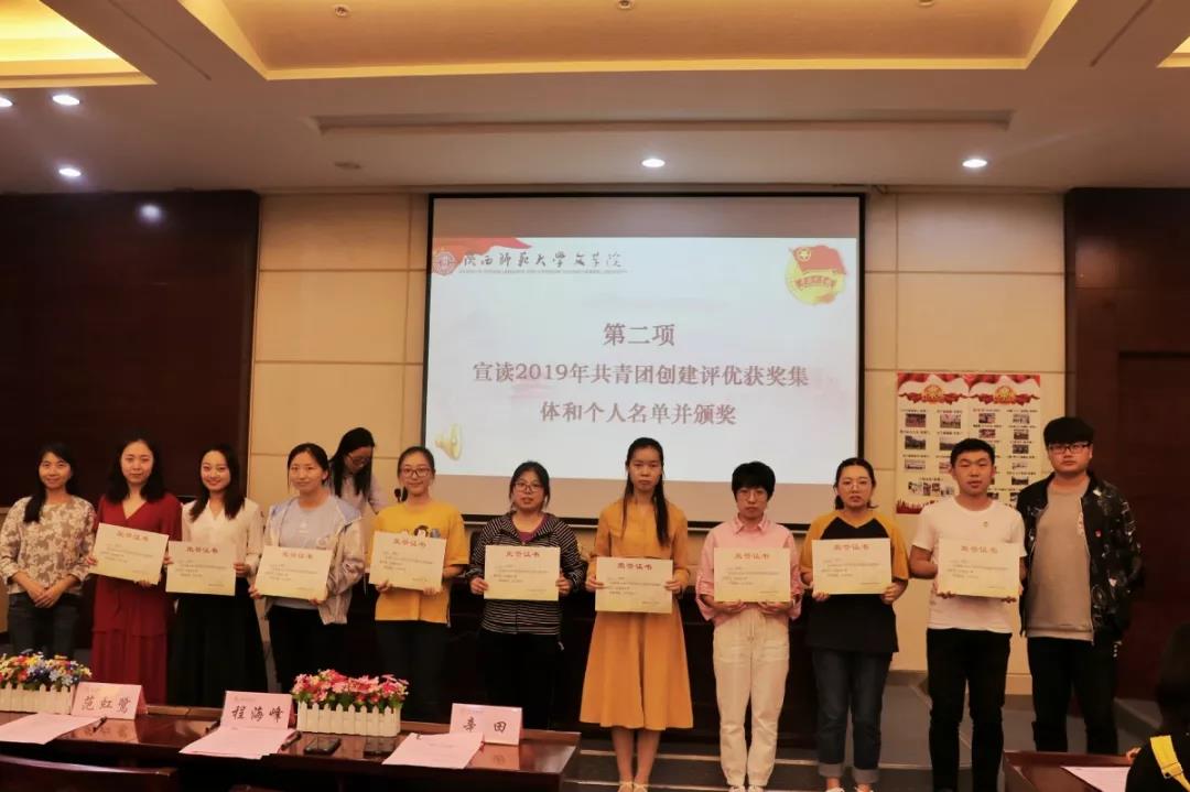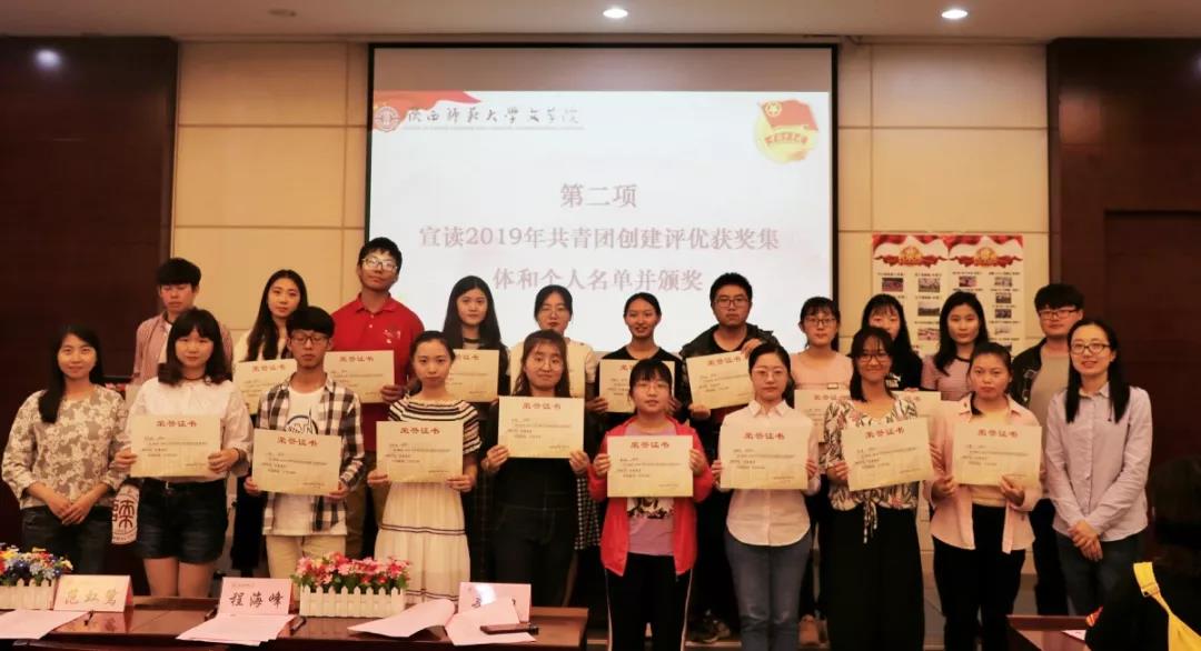 与会老师为五四红旗优秀团支部、校级示范团支部、初级团校建设先进集体、科技创新先进集体、霍楚宁等7名优秀团支部书记、刘天怡等16名优秀团干部及其他获奖集体和个人颁奖。