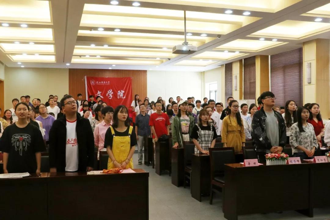 仪式在全体师生整齐嘹亮的团歌声中拉开帷幕。