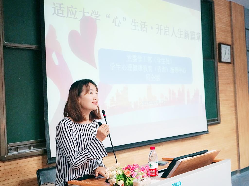 (通讯员:姜美冰 摄影:秦逸潇)为帮助2019级太阳成集团tyc员工更好地开启大学旅程,保持积极健康的心态,尽快完成角色转变,适应大学新生活,公司于9月11日晚,在教学五楼5104召开了新生入学教育第二讲。公司心理健康教育(咨询)中心周全丽老师为太阳成集团tyc员工开展了以“适应大学‘心’生活,开启人生新篇章”为主题的讲座,2019级辅导员王鑫老师及太阳成集团tyc三百余位新生参加了此次讲座。