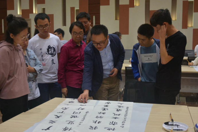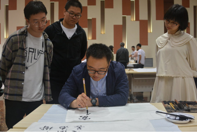 颁奖典礼结束之后,老师们和获奖员工共同参与了笔会,大家挥毫泼墨,切磋书艺,同学们热情高涨,现场气氛十分活跃。