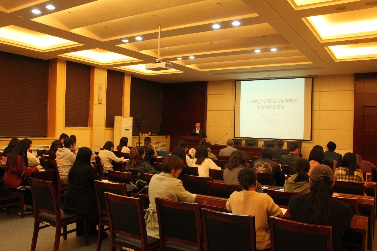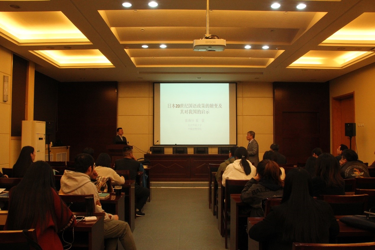 本场报告分为三个层次:首先,张维佳教授介绍了语言政策与社会发展的密切关系。张教授回顾和总结了世界各国语言政策发展的四个阶段,指出日本20世纪国语政策的嬗变正处于其中的第一和第二阶段。然后分析了国家整体发展目标对语言政策的影响,尤其是国际形势对中国语言政策的影响,并提出了国家语言能力建设、语言扶贫、多样化的语言资源保护与利用等一些现实的语言生活问题。
